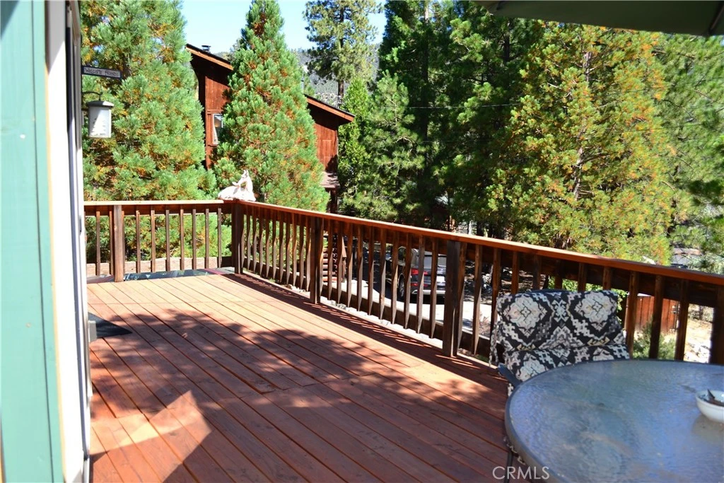 Location, location, location. This is an adorable mountain cabin on a quiet cul-de-sac, with ample off street parking, the National Forest as your backyard and an oversized lot. This two bedroom, one bath home boasts an open floor plan with the living room, dining room and kitchen set for easy entertaining. The living/dining room has sliding glass doors that open out onto the new front deck. The ceilings are wood and beamed with a ceiling fan and new wood looking laminate floors throughout. The kitchen is large with a window over the sink, lots of storage and a breakfast bar. The primary bedroom and guest bedroom both have sliding glass doors that open to the new back deck and the forest just footsteps away. There is also a full bath and laundry area. New ammenities include central air/heat, newer double paned windows, new decks, new water softener system and insulation under the house. This charming mountain getaway wont last.