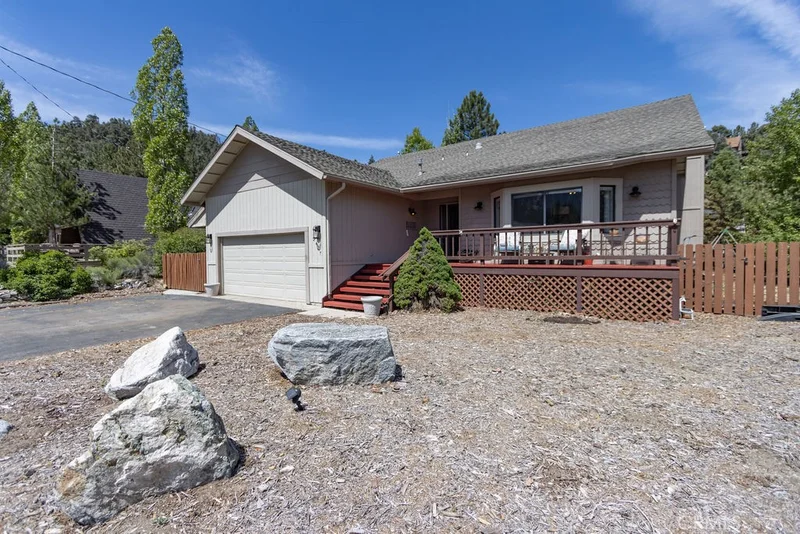 Welcome to this stunning single-level home, a rare gem spanning 2,336 square feet, located on a corner flat lot in the picturesque Pine Mountain Club. This property boasts beautiful mountain views and is conveniently close to the village with cafe’s, a general store, and local shops. Also close by are the local amenities, including parks, basketball courts, tennis courts, a baseball field, a clubhouse, a recreation room, a golf course, an equestrian center, a scenic lake with catch-and-release fishing, and an Olympic-style pool with a hot tub. As you enter through the front door, you are welcomed into the bright living room, featuring vaulted ceilings, a cozy pellet stove, and ample windows, including a charming bay window that invites natural light. The kitchen is a chef's dream, equipped with stainless steel appliances, abundant counter and cabinet space, and it seamlessly flows into the family room. The family room features French doors that lead to the back deck, perfect for entertaining or enjoying the serene outdoors. This home offers three spacious bedrooms, including a luxurious primary suite that features three closets, vaulted ceilings, and skylights, bathing the room in natural light. The primary bathroom is a true retreat, complete with a jet tub, separate walk-in shower, an expansive vanity, large wooden ceiling beams, and an extra room that can serve as an office or gym, also with French doors to the back deck. The home includes two full bathrooms, ensuring ample convenience for family and guests. Additional features include a whole house generator for peace of mind, a whole house fan for comfort, central heating, and ceiling fans throughout. Fresh interior paint, hard flooring throughout (carpet in the bedrooms), and built-in cabinets in the dining room and hallway add to the home’s charm. The paved, flat driveway is a rarity, making it easy for shoveling snow during winter months, and a laundry room with garage access adds practical convenience. Step outside to enjoy a fully fenced backyard (also a rarity) and the front porch deck—ideal spots for relaxation and enjoyment of the beautiful surroundings. Don't miss the opportunity to make this exquisite property your dream home! (Photos are enhanced)