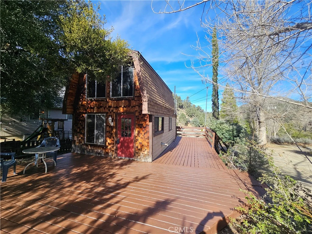 Escape to this charming 2-bedroom gambrel-style cabin tucked among the pines in the coveted Pine Mountain Club community, where tranquility meets opportunity. Sited on a level, easy-access corner lot with a semi-circular driveway, the home features rich wood finishes, open-beam ceilings, new flooring on the stairs and second level, and a warm wood pellet stove that creates a welcoming ambiance. The spacious wraparound deck and large windows capture panoramic mountain views and invite serene mornings or evenings spent soaking in the scenery, with plenty of room to expand or add your own personal touches. Enjoy the best of mountain living with access to 24-hour patrol, golf course, tennis and pickleball courts, clubhouse with rec room and pool, equestrian center and horse trails, private lake fishing, hiking and mountain biking, playgrounds, dog park, outdoor cooking and picnic areas, fitness room, storage and common RV parking. Perfect as a vacation retreat or income-producing rental, this cabin offers rare value in a sought-after community—don’t miss your chance to own a slice of paradise.