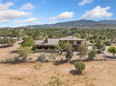 Located on the highly desirable South side of Pinon Hills, this spacious and serene home offers approximately 2.5 acres of land to call your own with stunning north-facing views and breathtaking sunset views. Enter the home from the large front view deck, perfect for relaxing or enjoying meals outdoors as the sky glows at dusk. Inside, you're greeted by a generous living room with soaring vaulted ceilings and a cozy wood-burning stove framed by a striking floor-to-ceiling rock fireplace. This home features a brand new HVAC system, Furnace, Wood Flooring, Paid-off Solar, Dual-Pane Windows, and Stunning Chicken Coops. The Formal Dining Room features beautiful Bay windows that bathe the space in natural light. The adjacent upgraded kitchen features granite countertops, a tile backsplash, a central cooking island, and white cabinetry with upgraded hardware. Just off the kitchen is a spacious laundry room and additional storage. The bedroom wing of the home includes a large master suite with an oversized en-suite bathroom featuring a soaking tub, separate walk-in shower, vanity, and a large walk-in closet. The secondary bedrooms include large closets with sliding doors and easy access to a full hallway bathroom. Additional highlights include new roofing, detached double garage with electric doors, storage room next to the garage and additional backyard shed, south-facing covered deck off the laundry room, fenced property, permanent foundation, owned propane tank. Property is zoned and ready for an ADU (Accessory Dwelling Unit) — ideal for multigenerational living, rental income, or a home office. Bring your toys, animals, and garden tools — there's plenty of space to roam, grow your own food, and enjoy a peaceful, self-sufficient lifestyle. All just minutes from the mountain community of Wrightwood with skiing, snowboarding, and summer recreation. Nearby lakes include Jackson Lake, Lake Gregory, and Silverwood Lake. Also close to El Mirage dry lake bed for off-road fun. Convenient access to Hwy 138 and I-15 for commuting to the Inland Empire or Palmdale and Antelope Valley. Located in the Snowline School District, with excellent resources for homeschooling families.