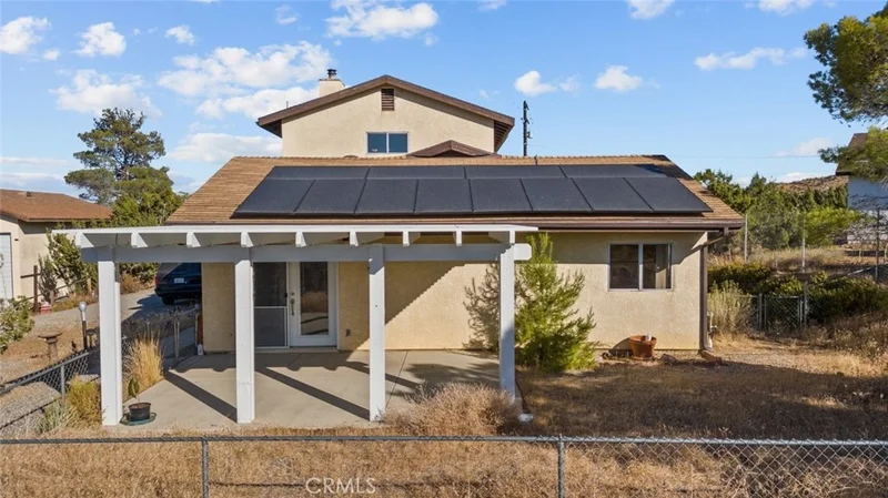 Welcome to 8676 Sky Line Drive in the picturesque city of Pinon Hills! This stunning two-story single-family home features 3 spacious bedrooms and 2 elegantly designed bathrooms, blending contemporary flair with comfort. The residence showcases exquisite tile and laminate flooring, ambient lighting that creates an airy atmosphere, and charming ceiling fans that provide a refreshing breeze, all complemented by beamed ceilings that add a touch of sophistication. Upon entry, you’re greeted by an expansive living room to your left, perfect for relaxation and warmth, complete with a cozy fireplace that invites you to unwind. The kitchen is a true entertainer's delight, boasting gorgeous granite countertops, a central island with a sleek electric stovetop, a built-in oven, a stylish range hood, a dishwasher, and generous cabinet storage, transforming it into a culinary haven. The inviting dining area is ideal for enjoying meals, while a dedicated laundry room enhances daily convenience. Bright and airy, the bedrooms offer ample space for personalization, with the primary suite featuring a luxurious en-suite bathroom that includes a stylish vanity area, a separate jetted bathtub, and a walk-in shower, along with a private balcony perfect for savoring the morning sun or evening breezes. The additional bathroom showcases both a bathtub and a walk-in shower for added comfort. Outside, your private backyard oasis awaits, complete with plenty of room to create your dream retreat on a spacious 3.2-acre lot where possibilities are endless. The detached garage offers ample parking space and can also be utilized for extra storage or transformed into an ADU. Ideally situated just a short drive from the 138 Highway, this exquisite property presents an incredible opportunity to embrace a tranquil lifestyle in a beautiful setting. Experience the charm and elegance of this remarkable home at 8676 Sky Line Drive!