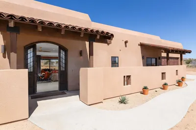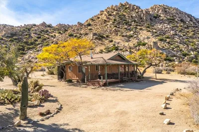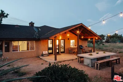 5165 Roy Rogers Road Modern Desert Masterpiece. In the high desert, silence, texture, and light becomes architecture. At 5165 Roy Rogers Road, design and landscape exist in perfect harmony a refined balance of modern form and natural stillness. Set on 1.26 acres in one of Pioneertown’s most coveted settings, this three-bedroom, three-bath residence reimagines desert modern living. A bold white-and-black façade, framed by a breeze-block courtyard and signature orange gate, creates a striking first impression both grounded and sculptural. Inside, expansive walls of glass and polished concrete floors allow natural light to move effortlessly through the space. The open-concept great room flows into a designer kitchen featuring bespoke cabinetry, waterfall-edge stone countertops, and subtle mid-century influences that soften the clean architectural lines. Each bedroom suite offers its own sense of privacy and calm spaces designed for rest, reflection, and a seamless connection to the surrounding landscape. Thoughtfully curated and fully turn-key, the home blends elevated design with everyday comfort. Outdoors, a private courtyard centers around a sleek in-ground pool and spa, surrounded by native landscaping, sunlit patios, and a covered outdoor kitchen designed for year-round entertaining under endless desert skies. Ideally located in the heart of Pioneertown, just moments from iconic destinations like Pappy & Harriet’s and the Red Dog Saloon, this home captures the essence of modern living rooted in desert history. 5165 Roy Rogers Road where Palm Springs polish meets High Desert soul. A timeless architectural retreat, ready to be experienced, shared, and remembered.