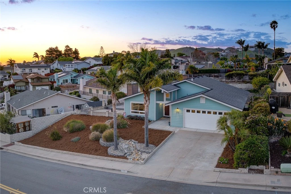 Experience panoramic white-water ocean views and the city light from this beautifully updated single-level home, perfectly perched on Highland Dr to capture the very best of Central Coast living. From the living room and kitchen, expansive coastal vistas create a stunning daily backdrop, while the oversized back deck offers the ideal space for entertaining, relaxing, and enjoying our mild year-round climate. This 4-bedroom, 2-bath residence offers approximately 1,812± sq ft of thoughtfully designed living space on a 7,500± sq ft lot. The private primary suite is tucked toward the rear of the home, providing a peaceful and quiet retreat away from the main living areas. Over the past seven years, the home has undergone extensive upgrades that enhance both comfort and style. Improvements include new windows, luxury vinyl plank flooring, recessed lighting, updated ceiling fans, and custom window shades. The living room fireplace has been transformed with a new gas insert, tile surround, and custom concrete mantel, while a second fireplace features a new gas log. The kitchen features stainless steel appliances, including a gas range, and both bathrooms have been fully remodeled with quartzite countertops and modern finishes. Additional interior enhancements include new baseboards, replaced bedroom doors, and a custom hall cabinet with quartzite countertop. Exterior improvements further elevate the home’s appeal, including new siding, fresh exterior paint, a new front door, security screen door, and a steel garage exit door. The front entry has been enhanced with new concrete and the removal of the entry column to create a more open, welcoming approach. The backyard is an entertainer’s delight, offering space for gatherings, outdoor dining, and enjoying the scenic surroundings. A two-car garage with built-in storage adds functionality and convenience. Additional features include air conditioning — a rare and valuable comfort feature in this coastal area — and a shaded outdoor patio cover, allowing for year-round enjoyment of the outdoor living space. Single-level homes with ocean views are highly desirable and rarely available in this area — making this a unique opportunity to own a thoughtfully upgraded coastal retreat. Make sure to stop by Highland Park, a 7 acre park which includes picnic areas and children’s play equipment. Just a short distance up from this property! A hidden gem and fun for all!