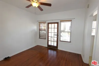 Very charming lower single apt., hardwood floors, front patio, full kitchen with pocket kitchen table and a large full bath with tub and shower + separate vanity area. Lots of light in this east facing unit. Large walk-in closet + separate storage space for bicycles. Street parking only and no laundry facilities on site (but there is a fluff n fold across the street and a laundromat a few blocks away). Great neighbors and a superb beach location. Cats OK. Only one adjoining wall. This is absolutely inviting.