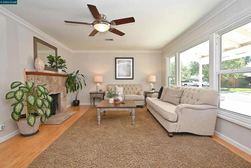 A standout feature of this property is the impressive detached 25x24 sq foot steel beamed shop with power—an investment of approximately $100,000—offering exceptional value and endless possibilities for a workshop, creative studio, or car enthusiast, with potential for ADU conversion (buyer to verify.) Additional storage shed and a convenient drive-through front garage to the back for easy access and expanded parking. This beautifully maintained home offers comfort and functionality with inviting curb appeal and a thoughtfully designed layout ideal for everyday living. Inside, a light-filled interior features new paint, new carpet, substantial door and window trim plus elegant crown molding. The kitchen offers ample cabinetry and workspace, opening to the dining and two living areas. Generously sized bedrooms provide flexibility, while the well-appointed bathrooms are beautiful. Permitted additions include the shop, an expanded family room and added square footage in the primary bedroom & bath. Ideally located near shopping, dining, BART, library, and commuter routes. This is a fantastic opportunity!! Come see on Sat (April 11th) from 12-3pm, Sunday (April 12th) from 2-4pm, & Tuesday (April 14) 10-1pm.
