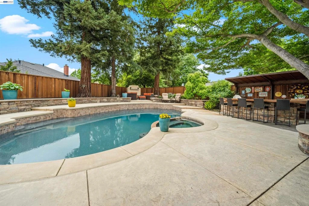 Welcome to this well cared for North facing craftsman home in the desirable Del Prado neighborhood of Pleasanton, situated on a spacious lot at the rear of a court. This 4 bedroom home offers a flexible layout with two bedrooms conveniently located on the main level, perfect for guests, a home office, or multigenerational living. Thoughtfully updated over the years, the home blends comfort and functionality. The kitchen is filled with natural light and overlooks an entertainer’s dream backyard that truly delivers a wow moment the minute you step outside, featuring a pool, fire-pit, multiple areas to relax and gather, and storage sheds for added convenience, creating a seamless indoor outdoor flow. A rare and standout feature for this neighborhood, the generous living spaces have been significantly expanded by a seamless addition, resulting in an expansive layout designed for both everyday living and effortless hosting , solar panels, and a water softener. The home is located within highly rated schools. Conveniently located near Hansen Park and just about a mile to downtown Pleasanton, you’ll enjoy easy access to local shops, dining, community events, and a vibrant lifestyle. Commuters will appreciate close proximity to Highway 680 for added convenience. A home that brings together comfort, space, location and lifestyle. Welcome Home.