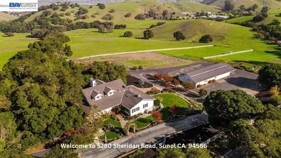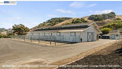 This exclusive, one-of-a-kind custom ranch property with over 100 acres and amazing views is a must see! The possibilities are endless. The MAIN SINGLE FAMILY HOME expansive residence boasts an impressive 3,912 +/- square feet, w/four bedrooms and 5 well- appointed bathroom. SEPARATE ADU 665 +/- sq. ft. w/ kitchen, bed, bath, living area, SEPARATE 6 STALL BARN 3268 +/- sq. ft. w/ possible living quarters with kitchenette & separate powder room, living area & additional separate room. The spacious floor plan promotes an easy flow between living areas, making it perfect for entertaining and relaxing. Inncludes a full downstairs bonus room with a separate bathroom and a built-in bar complete with a sink & storage offering versatility and potential for customization, making it ideal for a separate living suite, recreation room, home office, wine room, home gym or extra storage. The gourmet kitchen is equipped with a gas stove, and an extra room that can serve as an office or pantry. The large barn with separate rooms, one of which includes a kitchenette, living area, & half bathroom, potentially serving as sleeping quarters for livestock caretakers. Peaceful escape yet is just minutes from Sunol, Pleasanton, and Fremont, I-680 making it a great commute location.