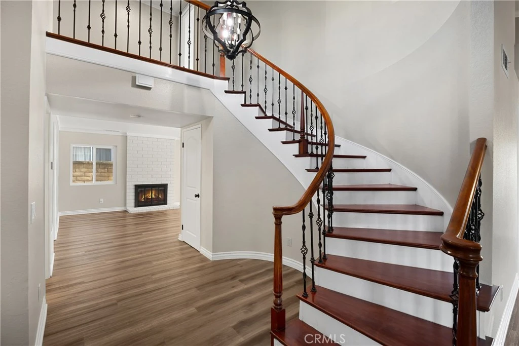 * * * * *THE SELLER HAS ADJUSTED THE LIST PRICE $80,000. * * * * * Welcome to this beautiful single-family home in the highly desirable Phillips Ranch! Phillips Ranch is a master-planned community with a distinct identity, located in southwestern Pomona. It offers convenient access to the 60, 57, and 71 freeways. This home boasts approximately 2,094 square feet of living space, featuring four bedrooms and 2.5 bathrooms. All four bedrooms and two full bathrooms are located upstairs, with a convenient half bath and laundry room downstairs. Upon entering through the double front doors, you'll be greeted by vaulted high ceilings and a spacious living and dining room combination, perfect for entertaining. The open kitchen offers ample storage and recessed lighting, and it seamlessly opens to the family room, complete with a charming stone fireplace. Upstairs, you'll discover a spacious master bedroom with dual closets. The backyard is great for entertaining, offering a usable, level yard with a combination of brick and concrete flooring, complemented by a welcoming wood patio. This home sits on a corner lot, meaning there are no homes directly behind or on one side of it. You'll also appreciate the easy freeway access to the 60, 57, 71, and 10 freeways