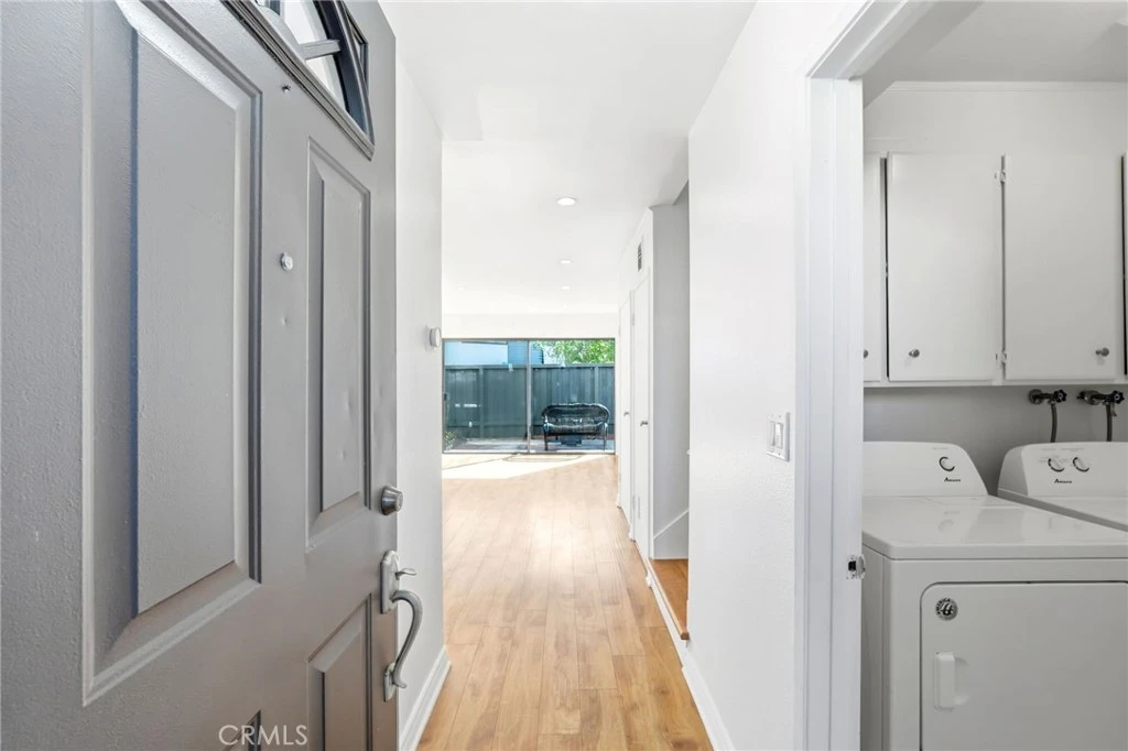 Nestled in a prime location, this charming condo offers the perfect blend of comfort and convenience. Boasting three spacious bedrooms and 1.5 baths, it features a large, sunlit living room that seamlessly extends to an inviting enclosed patio, ideal for relaxing or entertaining. The kitchen shines with sleek quartz countertops, ample pantry space, and recessed lighting, creating a warm and functional space. A washer and dryer on the main floor add to the convenience. Upstairs, the bedrooms are bright and airy, equipped with ceiling fans, mirrored closet doors, and an abundance of natural light. Unit has a fresh coat of paint. The community amenities include a sparkling pool and spa, perfect for unwinding. With two designated carport parking spaces, this home is as practical as it is welcoming.