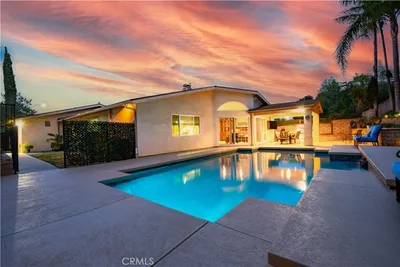 Looking for a Porter Ranch home for sale with a pool, single-story layout, and top-rated schools? If you’re moving to Porter Ranch or searching for the lifestyle that comes with living in Porter Ranch, this home checks all the boxes. Beautifully maintained 3-bedroom, 2-bath home with 1,814 sq ft of living space and a rare 3-car garage, designed for comfort and indoor-outdoor living. From the moment you arrive, you’re greeted by strong curb appeal, a wide paver driveway, and a charming private front courtyard. Inside, the home features a spacious layout with both formal and casual living areas. The formal dining room is ideal for gatherings, while the living room includes a cozy fireplace and welcoming atmosphere. The kitchen serves as the heart of the home, featuring granite countertops, rich cabinetry, stainless steel appliances, and a breakfast bar that opens to the main living space, creating a natural flow for everyday living and entertaining. A built-in bar area with wine refrigerator adds an extra touch for hosting. The family room stands out with large built-in lighted cabinetry and two expansive 8-foot sliding glass doors that bring in natural light and open directly to the backyard. The home includes remodeled bathrooms, and the primary suite features an attached en-suite bathroom, offering privacy and comfort. Step outside to a backyard designed for Southern California living, complete with a covered patio, built-in BBQ kitchen with sink and refrigerator, and a pool surrounded by multiple seating areas and lush, terraced landscaping for added privacy. Located near award-winning schools including Castlebay Lane Elementary, Robert Frost Middle School, and Granada Hills Charter High School, plus close to hiking trails, parks, The Vineyards at Porter Ranch, and easy freeway access. A rare opportunity to own a home that combines location, layout, and lifestyle in one of Porter Ranch’s most desirable areas.