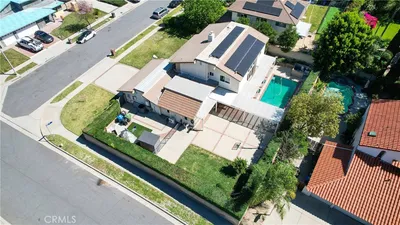 This 2960 sq.ft. home features 5 bedrooms and 3 bedrooms, situated on an approximately 11,000 sq.ft. corner lot within a double cul-de-sac. Upon entry, you are greeted by a large living room with FLOOR-TO-CEILING WINDOWS that flood the space with natural light, The layout flows seamlessly into the dining area, kitchen, and a huge family room. The kitchen was recently upgraded with custom cabinets, quartz granite countertops, and matching backsplash. The layout offers a living room, dining area, kitchen, a large family room, and a separate wing containing a den/office, 3/4 bathroom, and a guest bedroom. When you go upstairs, you will find the master suite and three additional bedrooms with two full bathrooms. External and utility features include a fully paid-off solar panel system, a Tesla charger in the garage, a swimming pool, a small basketball court, and a grass area separated by doggy gates. And added bonus is that this house is within the HIGHLY-COVETED GRANADA HILLS CHARTER TRACK, INCLUDING BECKFORD ELEMENTARY, NOBEL MIDDLE, AND GRANADA HILLS HIGH SCHOOL.