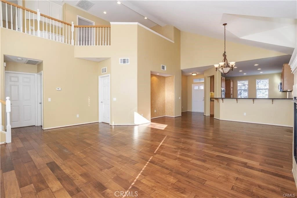 Nestled within the prestigious Promenade gated community in Porter Ranch, this exquisite two-story home offers an array of features that redefine comfortable living. Step inside and be greeted by an upgraded kitchen adorned with wood floors, granite countertops, and stainless steel appliances. The breakfast bar and adjacent dining area create an ideal space for both casual and formal meals. As you explore further, you'll notice the charming rounded wall 'corners' and the inviting hand-distressed hardwood floors that add character to every corner of the house. The downstairs is designed for relaxation and entertainment, featuring a cozy fireplace, a media enclave, and soaring high ceilings that create an open and airy atmosphere. The primary bedroom on the lower level is a retreat of its own with a sizable walk-in closet, a luxurious tub, and a separate shower. Upstairs, two additional bedrooms await, and they connect to a generously-sized loft, which can serve as a bonus room, study, or office space, providing flexibility and functionality. Enjoy the outdoor space with hardscape pavers in both the front and back yards, perfect for alfresco dining and gatherings. Modern comforts such as ceiling fans in the bedrooms and recessed lighting throughout the home enhance your living experience. Located in close proximity to excellent schools, shopping options, and easy access to the 118 freeway, this home offers convenience and quality of life that is truly unparalleled. Don't miss this opportunity to lease a superb residence in one of Porter Ranch's most sought-after communities!