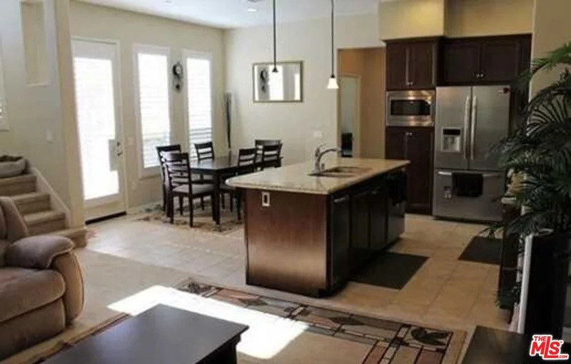 Beautiful two-level townhome located in the highly sought-after, guard-gated Seville at Aldea community in Porter Ranch. Built in 2013, this well-appointed home offers 4 bedrooms and 3 bathrooms, including a convenient first-floor bedroom and bath perfect for guests or a home office. Interior highlights include a designer entry door, plantation shutters throughout, and an oversized upgraded patio ideal for outdoor entertaining. The gourmet kitchen features granite countertops, a full backsplash, and stainless steel GE Energy Star appliances, and opens to the spacious living and dining areas. Upstairs, you'll find three additional bedrooms, including a generous primary suite with dual sinks, Corian countertops, and a large mirrored walk-in closet. A full bathroom with dual sinks and a laundry room with a side-by-side washer and dryer complete the second level. Community amenities include a resort-style pool and spa, children's wading pool, outdoor kitchen with BBQs, covered lounge area, fireplace, and playground. Conveniently located near Porter Ranch Community School (K8) and Porter Ranch Town Center.