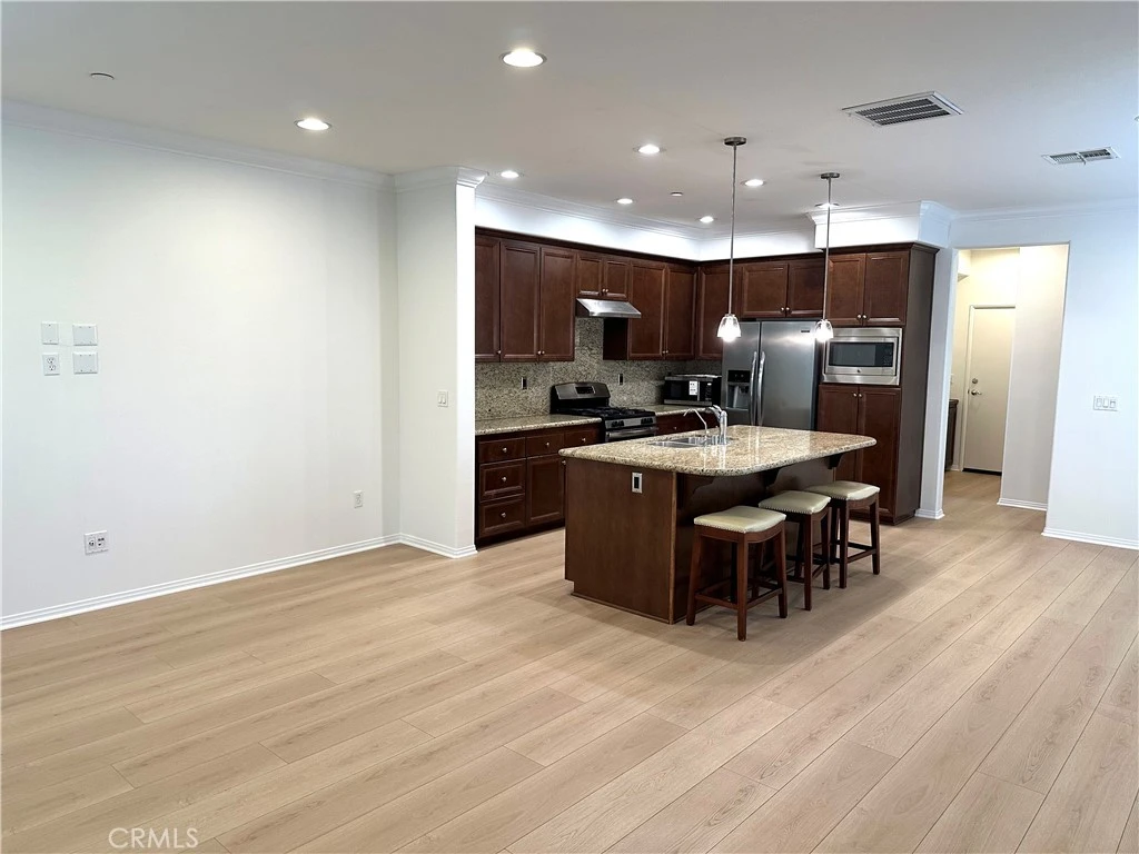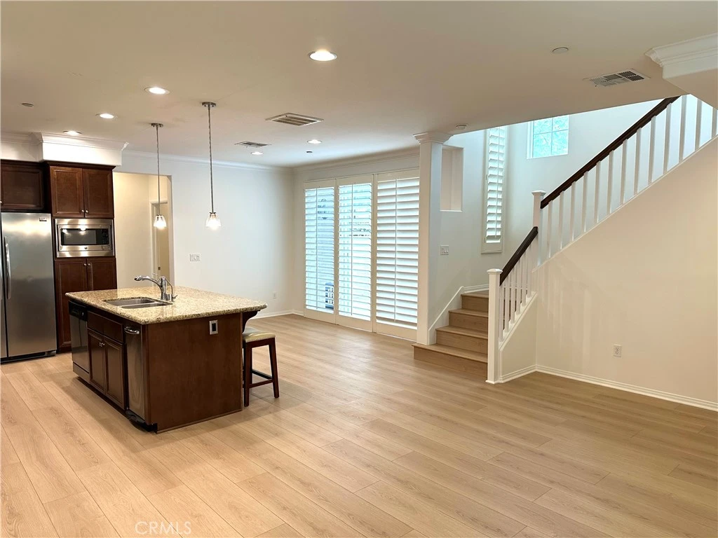 Situated within the prestigious Guard Gated "Aldea" Community in Porter Ranch, this beautifully updated end unit Townhome offers approximately 1,800 square feet of thoughtfully designed living space with 4 bedrooms, 3 bathrooms and an outdoor private patio. The versatile floor plan includes a full bedroom and bathroom on the main level, providing flexibility for a variety of living arrangements, work from home needs or guest accommodations. Recently enhanced with new wood like flooring, the interior presents a fresh, modern feel complemented by an open concept layout that connects the main living, dining and kitchen areas. Generous windows bring in abundant natural light, while the end unit location adds a sense of privacy and openness. Upstairs, the primary suite offers a comfortable retreat with well proportioned space, accompanied by additional bedrooms and bathrooms that provide flexibility for a range of uses. Additional features include in laundry unit and direct access 2 car garage with a tankless water heater. Residents of the Aldea Community enjoy access to a range of amenities including pool, spa, playground and outdoor common areas, all within a secure and well maintained environment. The location places the home just moments from The Vineyards At Porter Ranch, a premier destination offering an array of dining, retail and entertaining options as well as everyday conveniences. Not to mention the award winning Porter Ranch Community School sits at the top of the hill. This residence presents a rare opportunity to lease a well appointed home in one of Porter Ranch's most desirable gated communities known for its modern construction, landscaped surroundings and desirable Porter Ranch setting. This is more than just a rental, its a place to call home where comfort, convenience and community come together.