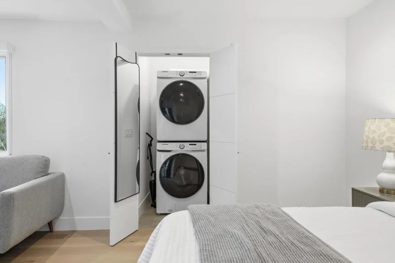 Luxury Furnished Studio Spacious 400+ sq ft luxury studio with private entrance and patio, overlooking beautiful multimillion-dollar views. Attached to the main home yet fully private and soundproof. Features include walk-in closet, high-end finishes, private indoor laundry, and easy street parking on a private court. Fully furnished with all utilities included.