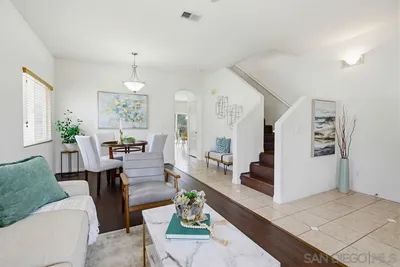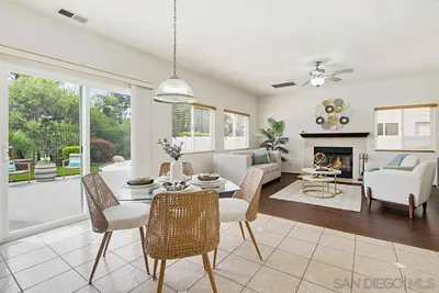 Enjoy spectacular creek & mountain views with exceptional privacy in this meticulously maintained and beautifully updated home backing to a peaceful creek bed with no neighbors behind. Located in the award winning Poway Unified School District with No HOA & No Mello Roos, this light filled home built in 2003 features high ceilings, abundant natural light, & an open floor plan designed for comfortable living. The exterior showcases refreshed front trim, side wall, gate, garage door, & front door creating beautiful curb appeal. The backyard offers a wonderful outdoor setting for entertaining with a full tile deck patio and a tranquil koi and shubunkin pond with a waterfall feature. Beautiful Japanese maples enhance the peaceful garden setting while mountain views and birdsong create a serene atmosphere. Inside you will find tile and engineered bamboo flooring, brand new carpet in all bedrooms, ceiling fans throughout, and a cozy family room fireplace. The kitchen features stainless steel appliances & brand new Quartz countertops, with matching Quartz counters in the downstairs powder room. Upstairs laundry includes a convenient sink. The spacious primary suite offers a walk in closet & Italian tile balcony with awning overlooking the creek and mountain views. The primary bath features a soaking tub and separate shower. Two additional bedrooms share a Jack & Jill bath. Additional highlights include a finished two car garage with epoxy flooring, EV charging outlet, whole house water filtration, & ample storage. Ideally located near trails, parks, restaurants & shopping. Enjoy spectacular creek and mountain views along with exceptional privacy in this meticulously maintained and beautifully updated home backing to a peaceful creek bed with no neighbors behind. Located in the award-winning Poway Unified School District with No HOA and No Mello Roos, this light and bright home built in 2003 features high ceilings, abundant natural light, and an open floor plan designed for comfortable living. The exterior showcases a fresh look with updated front trim, side wall, gate, garage door, and front door, creating beautiful curb appeal. The backyard is truly special, offering the perfect outdoor setting for entertaining friends and family with a full deck tile patio and a tranquil koi and shubunkin pond with a stunning waterfall feature. The landscape includes beautiful Japanese maples, currently in dormancy, enhancing the peaceful Japanese garden theme. Enjoy the soothing sounds of chirping birds and serene mountain vistas that surround the property. Inside, you will find beautiful tile flooring and modern engineered bamboo flooring, along with brand new carpet in all bedrooms, ceiling fans throughout, and a cozy family room fireplace. The kitchen features stainless steel appliances and brand new Quartz countertops, and the downstairs powder room also showcases stunning new Quartz counters. The upstairs laundry room includes a convenient sink for added convenience. The spacious primary suite offers a walk-in closet and an Italian style tile balcony deck with awning overlooking the creek and mountain views, the perfect place to enjoy the peaceful surroundings. The primary bath offers a spa-like soaking tub and a separate shower, creating a relaxing retreat. Two upstairs secondary bedrooms share a spacious Jack and Jill bathroom. Additional highlights include a two car finished garage with epoxy flooring, ample storage, and a 220V wall outlet for EV charging hookup and a whole house water filtration system. True pride of ownership is evident throughout, a rare find in today’s market. Ideally located close to local trails, parks, restaurants, shopping, and top rated schools.