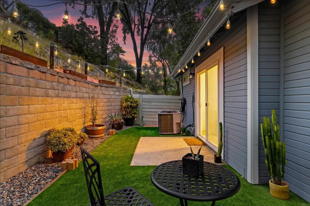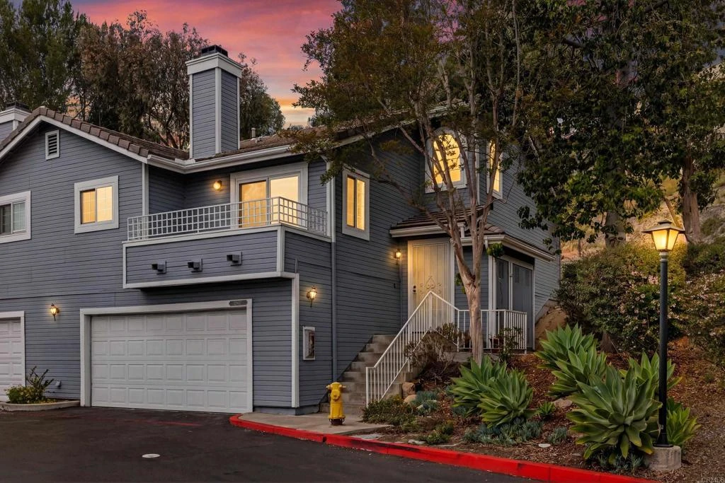 This beautifully updated corner unit offers the ideal blend of indoor comfort and outdoor living, with a peaceful, private backyard and mountain views from the front balcony. The kitchen is well-appointed with white cabinetry, quartz countertops, stainless steel appliances and recessed lighting, and opens to the main living space with durable wood-laminate flooring throughout. The living area is anchored by a stacked stone fireplace and flows effortlessly to the balcony with mountain and city light views. The backyard has been thoughtfully manicured, creating a private setting ideal for relaxing or entertaining. Additional highlights include fresh custom paint throughout, brand new carpet in bedrooms, dual pane windows and sliders, ceiling fans, updated bathroom fixtures, newer HVAC, and a spacious two-car garage. Located in one of Poway’s most desirable communities with access to top-rated schools, nearby shopping, dining, and convenient freeway access—opportunities like this are few and far between. Great community with pool and spa; trash and water is included. Dimensions & sq footage are approximate, per builder & assessor's record. All MLS and marketing info is approximate and not guaranteed.