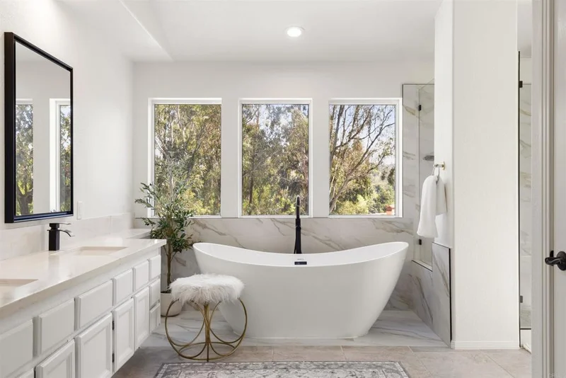 A rare opportunity in Poway featuring a detached ADU, resort style pool and spa, four car garage, owned solar with battery backup, and a private backyard retreat designed for entertaining. Welcome to 16883 St Andrews Drive, a beautifully maintained estate where space, versatility, and indoor outdoor living come together in one of Poway’s most peaceful and established neighborhoods. Inside, the home opens to a dramatic two story living room where soaring ceilings and a wall of windows flood the space with natural light and create an immediate sense of scale and warmth around the fireplace. The layout flows effortlessly through multiple living and gathering areas into a bright kitchen with quartz countertops, stainless appliances, and a sunlit breakfast nook overlooking the backyard. One of the most valuable features of the property is the detached ADU complete with its own kitchen, living area, bedroom, bathroom, and private laundry, offering exceptional flexibility for extended family, guests, multigenerational living, a home office, or potential rental income. The spacious primary suite offers a private retreat with its own fireplace, sitting area, spa inspired bathroom with freestanding soaking tub and glass shower, and a generous walk in closet. Upstairs bedrooms and flexible living spaces continue the home’s open feel while a balcony overlooks the lush backyard below. Outside, the property transforms into a true Southern California escape with a pool and spa, covered patio, gazebo lounge area, and multiple spaces designed for relaxing afternoons or hosting gatherings. The yard also features a thoughtfully planted collection of fruit trees and garden plantings including loquat, lime, black cherry, dragon fruit, fig, orange, grapes, apricot, apple, avocado, mandarin, guava, pomegranate, mint, rosemary, garlic and green onion, creating a unique garden setting that will continue to mature over time. Additional improvements include remodeled bathrooms, quartz kitchen upgrades, engineered hardwood flooring, recessed LED lighting, upgraded AC, a 29 panel owned solar system with battery backup, and a professionally finished four car garage with epoxy floors and built in storage. Located just minutes from parks, hiking trails, golf, and top rated Poway schools, this property offers a rare combination of space, flexibility, and lifestyle in one of North County’s most desirable communities.