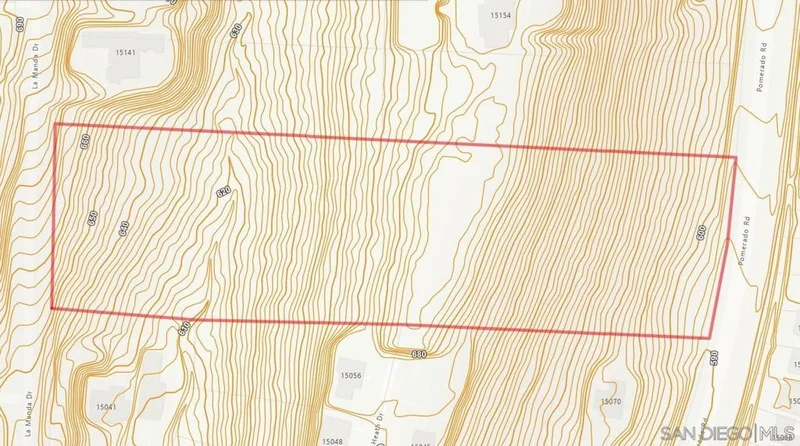 Take advantage of this rare opportunity to own 8.16 acres in the heart of Poway. Zoned RR-C for residential development. Build your home on this large parcel or subdivide the property into 2-4 separate parcels. Great location close to shopping (Target, Costco, Home Depot, ...), restaurants, schools, hospital, and the I-15 freeway. This large parcel spans between La Manda Dr and Pomerado Rd. See virtual tour for aerial video. Utilities are in the paved street (see photos). Sewer & water hydrant are nearby. Electric, phone, and cable are immediately in front of the property on La Manda Dr. Sewer looks about 40 steps from the property. Water and water hydrant are about 60 steps from the property. Electric and cable are immediately in front of the property on La Manda Dr. From Zoning Section 17.08: "The RR-A through RR-C residential rural zone is intended as an area for very low density residential uses with minimum lot sizes of one acre and maximum densities of one unit per acre. Additional uses are permitted that are complimentary to, and can exist in harmony with, a rural residential neighborhood. Specific slope criteria shall be applied in the determination of the maximum allowable densities to achieve compatibility with the topography and public service constraints."