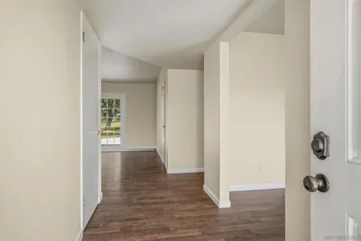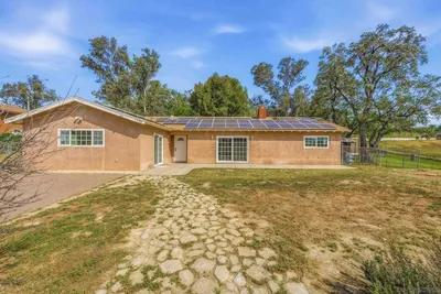Escape to your private hilltop sanctuary on 1.36 acres of flat usable land in the heart of Ramona. Tucked away at the end of a private road in a peaceful silent zone, this meticulously updated main residence features an airy open concept floor plan with modern laminate flooring and carpet, recessed lighting, and a chef’s kitchen anchored by sleek granite countertops and stainless steel appliances. Breathtaking panoramic mountain views are framed through large bright windows throughout the home. Outside, the expansive lot provides a blank canvas for an equestrian setup, pool, or vineyard. The property includes a detached outbuilding with a one car garage and a covered carport. Enjoy unparalleled privacy and the sustainable benefit of an active solar system, all just minutes from local schools, shopping, and famous Ramona wineries. Detached garage, workshop, and carport. Note supplement for residence amenities.
