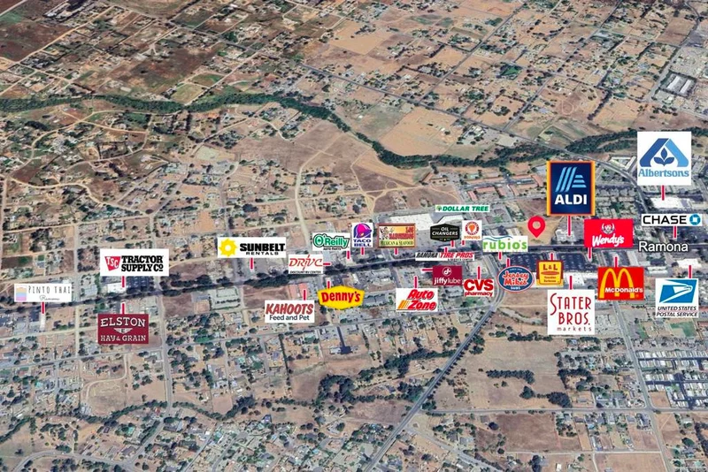 After more than two decades of being off market, RE/MAX Direct is pleased to present a rare opportunity with 1.16 acres of ultra-prime commercial land on the "AM side" of Main Street located at 1703 Main Street, Ramona, CA 92065. Zoned Village Residential/Commercial (RMV-5) — the most intensive commercial zoning designation in Ramona — the property offers exceptional flexibility and accommodates a wide range of high-demand uses. Positioned directly across from a top-performing Stater Bros. anchored shopping center and benefitting from ±40,000 average daily trips (ADT) along Main Street (SR-67), the site provides unparalleled visibility and consumer exposure. Two legal access points, including direct frontage on Main Street and secondary access from Paseo Court, ensure smooth circulation and optimal site planning for single-tenant or multi-tenant development. Surrounding uses further enhance the property’s profile: a newly constructed high-end daycare/preschool (Children’s Paradise) is being delivered directly west of the property in 2026; luxury condominiums are located immediately north; a newly constructed ALDI grocery store is located to the east, and the Stater Bros. shopping center to the south features an established mix of food, beverage, and service providers. The site is flat, rough-graded, with all utilities available at the property frontage, making it development-ready. Multiple preliminary site plans (single-tenant retail, dual-tenant layout, car wash concept, etc.) have been conceptualized to demonstrate versatility and maximize end-user capability. As one of the best and last remaining developable commercial parcels within the heart of Ramona’s commercial core, the property presents a unique chance for a national chain restaurant, retailer, or service provider to secure an irreplaceable location. With demand rising and supply scarce, time is of the essence to capture this opportunity.