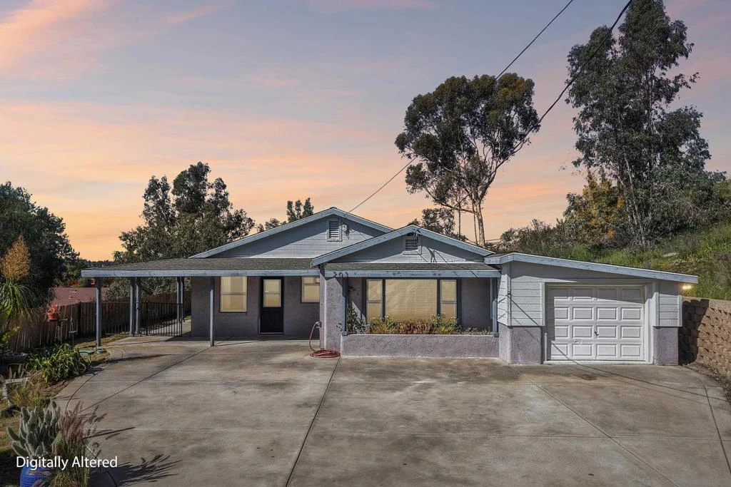 Situated at the quiet end of D Street, this single-story Ramona home offers privacy, space, and a truly unique setting on an expansive .82-acre lot. While neighboring properties surround the parcel, the natural topography and hillside setting create a rare sense of privacy, resulting in a peaceful, country-style atmosphere while still being conveniently close to town. The home lives large for a 2-bedroom, featuring oversized bedrooms, a bonus room with its own exterior entrance, and a comfortable living room centered around a warm wood-burning stove. The kitchen has been updated, and major improvements, including a 2021 HVAC system, provide peace of mind. An indoor laundry room adds everyday convenience. Enjoy outdoor living under the covered patio, relax on the turf lawn, and take in beautiful sunset and valley views from the backyard. The lot extends beyond the home and includes a large flat area near the driveway—ideal for RV parking, trailers, or extra vehicles. Rare in-town privacy, usable land, and small-town charm combine to create a special opportunity in the heart of Ramona.