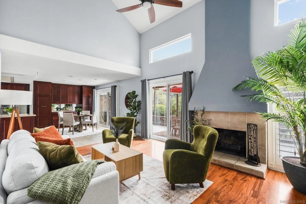 Welcome home to this beautifully maintained 1,847 sq. ft. 3-bedroom, 3-bath condo, the largest floor plan in the community, with stunning views of the newly remodeled San Vicente Golf Course. Nestled in San Diego Country Estates, this spacious home is perfect for families or entertainers. The open-concept family room boasts soaring 18-foot ceilings and a cozy fireplace, while the large eat-in kitchen offers ample counter space and cabinetry. Step onto the private patio, where you can enjoy morning coffee, dine outdoors, and take in breathtaking sunsets over the 16th fairway and surrounding mountains. The master retreat upstairs features oversized windows, a walk-in shower, and spectacular golf course views, while the second upstairs bedroom includes its own full bath, providing added privacy for guests. Downstairs, the third bedroom features built-in cabinets and a desk, making it ideal for a home office, with private access to a full bath. Additional highlights include full-size laundry, ample storage, and energy-efficient windows that enhance natural light while keeping the home comfortable. Parking is easy with an attached one-car garage plus an adjacent covered carport for extra convenience. Enjoy resort-style living with HOA amenities, including tennis, basketball, and pickleball courts, horse trails, playgrounds, dog parks, a community pool, and miles of hiking paths—plus a golf course right in your backyard. Don’t miss this rare opportunity to enjoy country living with modern comforts in a vibrant community!