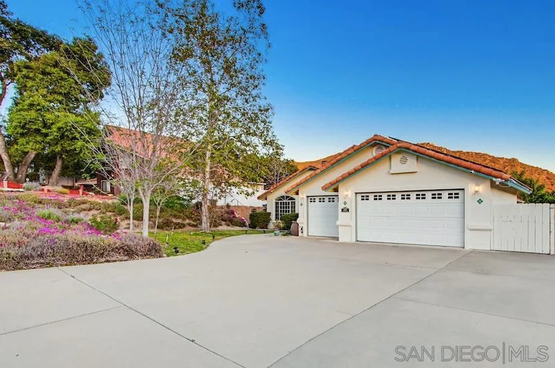 Welcome to this beautiful spacious, single level home in San Diego country estates. Come & see it, to appreciate all it has to offer. Picture window in living room brings nature closer. Wood stove in family room is wonderful feature & yes there is also a dual-sided fireplace in the living room and sitting area as well. The kitchen opens to the family room makes entertaining with family & friends cozy. In ground pool in the backyard is the perfect place to cool down on warm days, have a cook out, relax & enjoy the views.. 2 sets of solar 1st set is paid off (installed by previous seller) & 2nd installed in 12/2022 with interest rate of 1.49%. Home has ceiling fans, and recessed lighting. Kitchen with granite counters, island & stainless steel appliances. Full bathroom by the in ground pool makes it easy to clean up before coming back in the home. All appliances including washer/dryer conveys.. HOA covers pools, golf course, parks & tennis courts per seller.. Seller did the following: • May 2021: Flooring in all bedrooms was upgraded from carpet to tile. • December 2022: Installed additional solar panels. • August 2023: Installed new cabinets and a new toilet in the master bathroom. • May 2024: Installed a new water heater. • Installed a new dishwasher and microwave oven. • Installed new faucets in the master bathroom and bathroom 1. • Installed new Vinyl Fence on one side of the property and redid part of the chain link fence on the other side of the property. • Installed new window blinds for 2 windows in living room