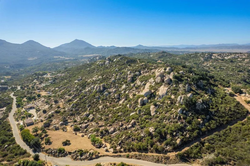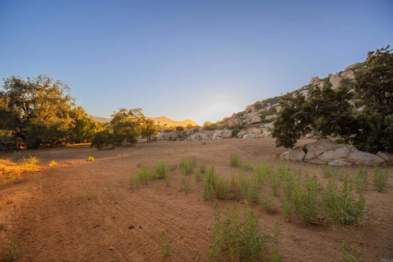 Tucked away in Ramona’s highly desirable West End lies a remarkable opportunity to create your own private estate on over 19 acres of land that feels more like a national park than a typical homesite. Surrounded by towering granite outcroppings and backed by a dramatic mountainside—fully within your ownership—this secluded property offers both tranquility and inspiration. Mature trees provide ample shade throughout the property, creating a comfortable and inviting atmosphere year-round. With an abundance of thoughtfully manicured and usable terrain, the property provides a generous canvas for your vision. Whether it's a custom residence, guest house, hobby buildings, barns, or sport courts, the possibilities are endless. Included in the sale are the owner’s thoughtfully designed conceptual plans for a sprawling single-level, 5-bedroom home of approximately 6,000 square feet, complete with a 4-car garage. The plan also features a lagoon-style pool integrated into the natural granite shelves, adjacent to a large water feature and private waterfall retreat—creating a stunning focal point against the raw natural beauty of the site. The property also enjoys westerly-facing vistas that extend to the distant Pacific Ocean and La Jolla coastline—an ever-changing view that adds a rare and remarkable dimension to the setting. Access is easy and convenient via a paved private road, and the property’s approach is marked by a grand and exclusive sense of entry that sets the tone for the exceptional space protected within. Infrastructure is already in place to support development, including a high-producing private well, a 200-amp electrical service, and 2-inch water lines with pressurized hydrants throughout the site. Two 10,000-gallon water storage tanks are strategically located at the high point of the property, ensuring ample water pressure at a moment’s notice. The work that has been done to prepare this parcel—through boundary adjustments with neighboring properties and collaboration with the County—represents years of planning and investment that a new owner will now benefit from. This is a rare chance to step into a setting that combines natural grandeur with development readiness. If you're looking for a truly special homesite, this West End property is ready to inspire your next chapter.