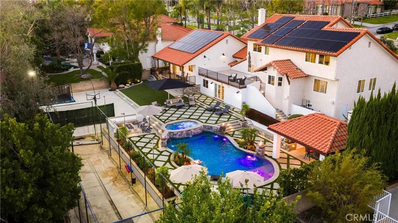 Welcome to 10829 Boulder Canyon rd nestled on a picturesque, tree-lined street in the exclusive Deer Creek Community. This fully upgraded smart estate is a masterclass in modern luxury. From the moment you arrive, the curb appeal sets a sophisticated tone. A stunning entry welcomes you into the formal living and dining room, leading seamlessly to the kitchen and family room overlooking the backyard oasis. The kitchen is anchored by quartz countertops and premium cabinetry, while wood-look tile spans the entire main level. The home features one bedroom on the main level, three bedrooms upstairs, and a bonus family room below the main level complete with a full bathroom and direct access to the backyard. The backyard is an entertainer’s paradise, framed by incredible views. A sparkling pool with cascading waterfalls is accented by dramatic fire bowls, a fire pit, and a cozy outdoor fireplace—creating year-round ambiance. Managed by the Pentair ScreenLogic system, you can control pool features and lighting directly from your smartphone. Offering resort-style recreation at home, the backyard also features a batting cage, basketball court, and an in-ground trampoline. A covered outdoor kitchen is complete with a built-in BBQ, natural gas burners, a sink, a drop-in cooler, and commercial-grade refrigerators—perfect for effortless entertaining. Three dedicated Sonos speaker zones with wireless amps ensure the perfect soundtrack for any gathering. In addition, an ADU built in 2021 mirrors the same high-end finishes as the main residence. Featuring 1 bedroom, 1 bathroom, full kitchen, living room and independent climate control. With a seperate entrance, this space provides the ultimate opportunity for multi-generational living or renting it out. Rest easy with a comprehensive security suite that includes hardwired cameras complemented by Ring integration. Two dedicated monitoring stations—located in the family room and the primary suite—provide real-time visibility and total control. ** Solar is paid for - plus 2 10k Batteries ** RV Parking Experience the pinnacle of Deer Creek living!!