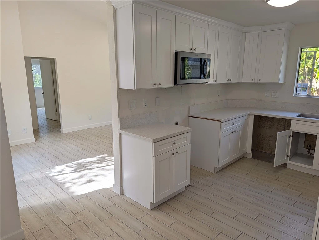 This is a Single Family DETACHED single story house with 2 bedroom, 1 bathroom, 917 sq ft of living space. This house also features: Extensively remodeled kitchen, remodeled bathroom, new paint, new recessed lights, 2 car garage with direct access, additional driveway parking, next to greenbelt for privacy and NO HOA. Doing final touches on the repairs and house cleaning. Contact us today.