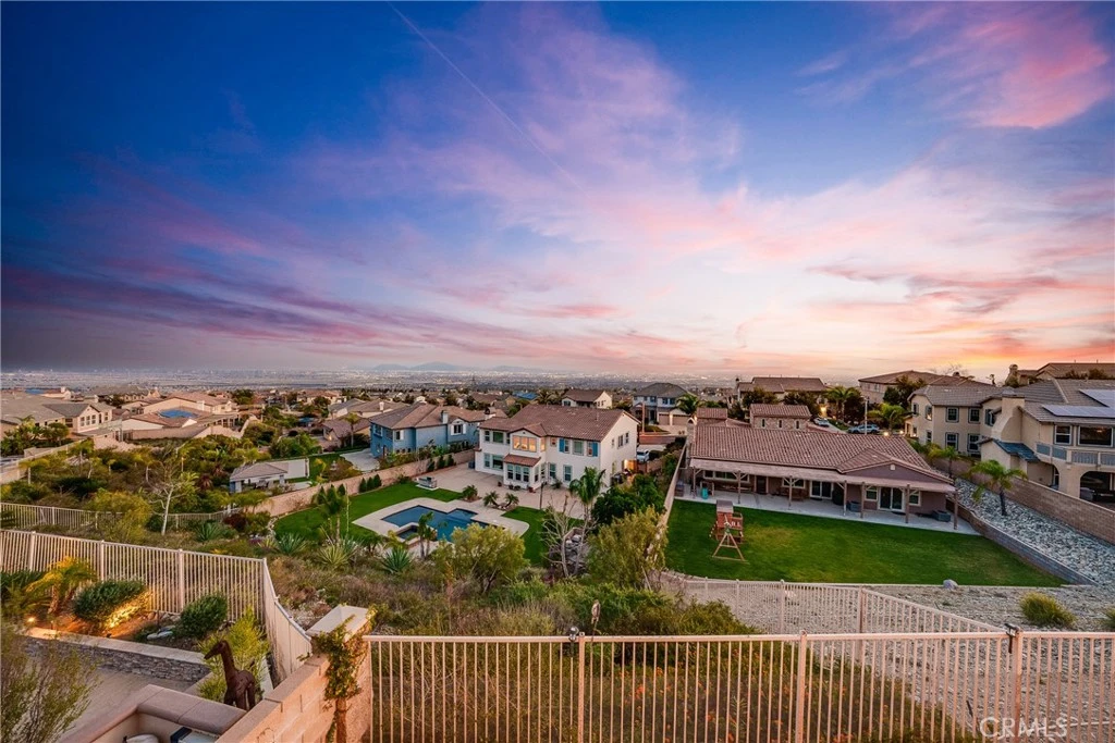 “Panoramic Views” “Gated Community” – Beautiful pointed breathtaking estate that blends architectural elegance with resort style living. Positioned on an elevated lot with sweeping Panoramic City and Mountain Views, this home offers an extraordinary combination of luxury, comfort, and unforgettable scenery. A grand exterior staircase leads to the impressive entry. Greeting from elegant iron door, the formal foyer opens to soaring ceilings and a dramatic curved staircase with wrought iron detailing and decorated tile floorings, setting the tone for the home’s refined craftsmanship. At the heart of the home, the family room, kitchen, and breakfast room flow together in an open concept design. The family room features a cozy fireplace, built in entertainment center, and expansive windows framing serene outdoor views. The gourmet kitchen is including many cabinetries, granite countertops, stainless steel appliances, and a generous center island with seating — perfect for casual dining or entertaining. Adjacent to the kitchen, the light filled breakfast room offers panoramic views and direct access to the outdoor living spaces. The main floor is thoughtfully designed for both convenience and versatility, featuring a private office with built-in shelves and a dedicated home theater is a huge plus for entertaining. A full bedroom suite perfect for guests or multigenerational living. Upstairs, the primary suite is a true retreat, offering a spacious sitting area, spa inspired bath, and direct access to a private patio with commanding panoramic views. An open loft adds additional flexible living space, ideal for a lounge, library, or play area. Every secondary bedroom throughout the home is a full suite, providing comfort and privacy for all. Designed for relaxation and entertainment, the outdoor spaces are exceptional. A covered patio extends the living space - perfect for year round enjoyment. A modern swimming pool and elevated spa overlook rolling hills and vibrant sunsets, creating a private oasis that feels like a five star resort. Expansive tiled decks and multiple seating areas set the stage for gatherings or quiet evenings under the sky. This is a rare opportunity to own a thoughtfully designed home with room to grow and entertain. Top-rated school boundaries.