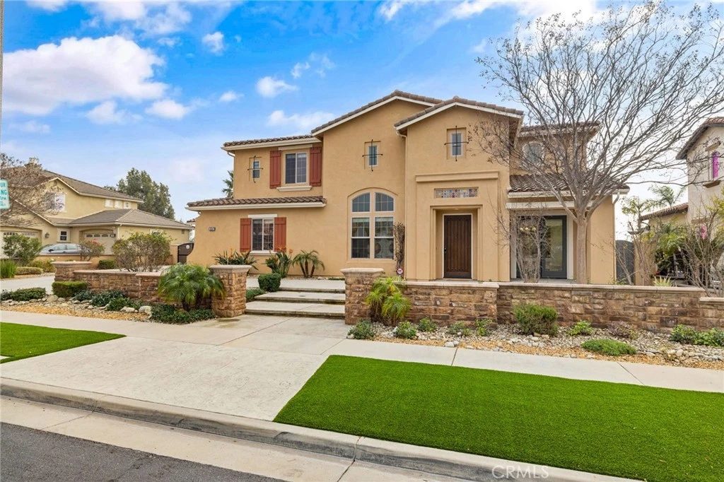Large Single Family Residence built by JT Storm Development, Highgate Collection Residence Plan 2 with Spanish Elevation, showcasing the largest floorplan in a tract of only 11 homes. This property sits on a spacious rectangular flat lot of approximately 13,804 Sq. Ft. and features a North-facing front door with a South-facing backyard. Conveniently located just South of the 210 Freeway, West of the 15 Freeway, and North of the 10 Freeway, it offers quick access to Victoria Gardens Mall, Ontario International Airport, and the future Brightline High-Speed Electric Train station projected to connect Rancho Cucamonga to Las Vegas between 2028–2029. Home features include approximately 4,159 Sq. Ft. of interior living space, 4 Bedrooms plus a Retreat in the Primary Suite, 4.5 Bathrooms, Two (2 Car Attached Garages), Long Driveway, 2 New A/C Units Installed in 2024, New Interior Paint, New LVP Flooring, 10 Ft. Ceilings Downstairs and 9 Ft. Ceilings Upstairs, a Wheelchair Accessible Layout Downstairs, and No HOA and No Mello-Roos. The main level includes a Formal Living Room, Formal Dining Room, Family Room with Fireplace, and a Spacious Kitchen with Grand Center Island and Breakfast Bar, Granite Countertops, Walk-In Pantry, Butler’s Pantry, and Stainless-Steel Appliances including KitchenAid 5 Burner Cooktop, Whirlpool Range Hood, Whirlpool Microwave, New Samsung Double Oven, and Whirlpool Dishwasher. There is also a Downstairs Bedroom with its own Bathroom and Walk-In Closet, plus a Separate Powder Room for Guests. The upstairs level features a Loft for additional living space and a Large Primary Suite with Formal Entry, Retreat Area, Double-Facing Gas Fireplace, Two Walk-In Closets, and a Primary Bathroom with Granite Countertops, Dual Sinks, Private Toilet Room, Soaking Tub, and Separate Shower. All additional upstairs bedrooms feature their own bathrooms and walk-in closets. Exterior features include a Newer Covered Patio, Automatic Sprinkler System, Recently Updated Landscaping, and Artificial Grass in the Front and Back yards for Low Maintenance and Water Efficiency, along with a Newly Installed Wide Wrought Iron Side Gate.