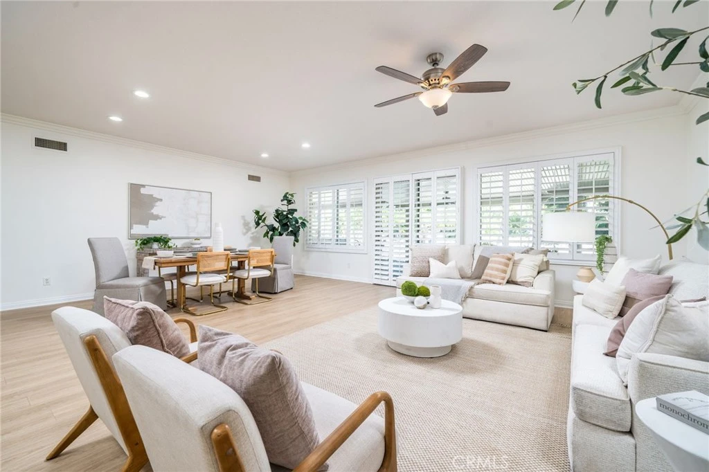 Experience resort-style living in this stunning single-story home, with an opportunity to appreciate a property that is perfectly tucked away at the end of a quiet, upscale cul-de-sac. This is a forever home, set against our gorgeous foothills; the perfect retreat in one of Rancho Cucamonga’s most desirable and tranquil neighborhoods. This expansive four-bedroom, two-and-a-half-bathroom masterpiece feels like a private oasis where every day life can feel like a vacation. The bright and airy interior is highlighted by a massive formal living and dining room designed for grand-scale entertaining. The heart of the home boasts a huge open-concept kitchen and den that has an elegant fireplace that can be enjoyed alongside views of your gorgeous backyard. The wood-look flooring throughout the property creates an ambiance where one room flows seamlessly into another. The fourth bedroom could easily be converted into an office for the in-home work experience. Every room has beautiful high-end shutters adorning dual-paned windows. The primary suite offers a seamless indoor-outdoor experience, opening directly to your breathtaking backyard. Enjoy your own private paradise featuring a sparkling pool with a cascading waterfall, lush tropical Hawaiian landscaping, and sweeping views of the gorgeous snow-capped mountains. Car enthusiasts and hobbyists will appreciate the two separate garages, both of which feature pristine, durable epoxy flooring; the first is a spacious two-car garage, while the second is a single-car garage that includes a dedicated workshop area for projects and storage. With a sprawling lot that provides plenty of room for side-yard RV parking and ample space to potentially add a secondary dwelling unit, or an option to convert one of the existing garages into a guest house. The possibilities are endless. Located just steps from scenic walking and hiking trails, this peaceful and tranquil property offers a lifestyle of total relaxation. Whether you are unwinding poolside or taking in the stunning natural surroundings, this home offers a sense of privacy and elegance. From the sprawling floor plan to the beautifully kept yards, this property was designed to be a peaceful, comfortable place for anyone who loves the space and ease of a big single-story home. Come and see for yourself why this home is the perfect place to enjoy day and night. Step inside, take in the beauty, and enjoy the California lifestyle at its finest!