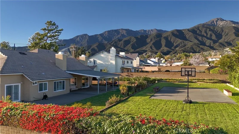 Foothill living with mountain views on nearly half an acre. Positioned in one of Rancho Cucamonga’s most desirable foothill neighborhoods, where larger parcels and the backdrop of the San Gabriel Mountains create a setting that is increasingly hard to find. Set against the scenic foothills of the San Gabriel Mountains, this spacious two-story residence offers approximately 2,881 square feet of living space with six bedrooms and three bathrooms on an expansive 20,492 square foot corner lot. Large windows and the home’s elevated foothill setting allow natural light and mountain views to become part of the everyday living experience. Inside, the open floorplan features soaring cathedral ceilings, crown molding, recessed lighting, and multiple living areas designed for both entertaining and comfortable daily living. The kitchen offers quartz countertops, a breakfast counter/bar, butler’s pantry, and generous cabinetry while opening directly to the family room where a fireplace creates a warm gathering space. The main level includes a spacious primary suite positioned to capture views of the surrounding foothills, complete with walk-in closet, dual sinks, soaking tub, and separate walk-in shower. Additional bedrooms provide flexibility for guests, family, or workspace. Upstairs, a loft and additional living areas create versatile space for a home office, recreation room, or secondary living quarters. Outdoors, the nearly half-acre corner parcel provides scale rarely found in the area, complemented by a covered patio, brick fencing, and mountain-backed surroundings that create a peaceful residential setting. Located in an established foothill neighborhood of Rancho Cucamonga near premier shopping at Victoria Gardens and outdoor recreation including North Etiwanda Preserve, this property offers space, views, and location in one of the Inland Empire’s most desirable communities.