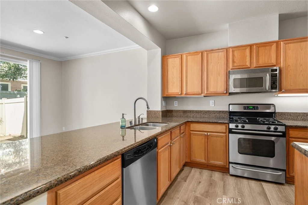 Beautiful 3-bedroom, 2.5-bath rental condo located in a gated community in Rancho Cucamonga, within the highly desirable Etiwanda School District. Offering approximately 1,670 sq. ft. of living space, this home features new vinyl plank flooring downstairs and brand new carpet upstairs. The kitchen includes stainless steel appliances, granite countertops, maple cabinetry, and a refrigerator. Upstairs offers a convenient laundry room with washer and dryer included, along with a spacious primary suite featuring a walk-in closet, dual sinks, and a separate tub and shower. Additional highlights include a downstairs half bath, large storage closet, and a private enclosed patio with custom tile and vinyl fencing. Conveniently located near shopping, dining, and just minutes from Victoria Gardens, with easy access to major freeways.