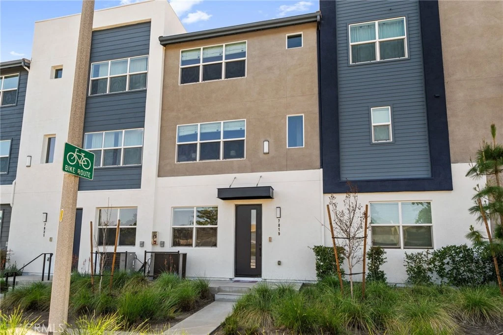 Welcome to this stylish three-level condo offering 3 bedrooms and 3 bathrooms with a thoughtfully designed layout perfect for modern living. On the entry level, you’ll find a versatile office or den, ideal for working from home or a private retreat, along with a convenient powder bath and access to the two-car garage located at the rear. The second level is the heart of the home, featuring a bright open-concept floor plan with a spacious family room, dining area, and a stunning kitchen. The kitchen showcases a waterfall-edge island, ample cabinetry, pantry and and seamless flow for entertaining. Sliding glass doors lead to a private balcony—perfect for morning coffee or evening relaxation. An additional powder bath on this level adds extra convenience. Upstairs, the third level offers a relaxing primary suite complete with a walk-in closet and a spa-like primary bathroom featuring dual sinks and a walk-in shower. Two additional bedrooms share a full bathroom, and a laundry closet with space for a stackable washer and dryer is conveniently located on this floor. Residents enjoy fantastic community amenities, including a swimming pool, hot tub, clubhouse, BBQ and picnic areas and a fitness center. Ideally located near Target, Victoria Gardens, and with easy access to the 210 and 15 freeways, this home blends comfort, style, and convenience in one exceptional package.