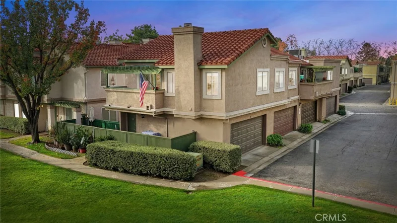 Welcome Home to Meadowood Village! Discover your tranquil retreat in this highly desirable end-unit condo, perfectly situated in one of Rancho Cucamonga's most popular communities. The journey begins at your private, fenced patio entry—the ideal spot for an outdoor BBQ, patio furniture, or a cozy vegetable garden. Step inside the bright, open floor plan, where soaring vaulted, beamed ceilings and a warm, inviting fireplace create the perfect atmosphere for gathering with loved ones. The open concept kitchen which includes built in microwave, gas range, and dishwasher. A covered balcony offers a peaceful spot and extension to your indoor living space to add additional patio furniture and a place to relax and enjoy your morning coffee while taking in the beautiful sunrise. The spacious primary suite feels like a true sanctuary with its own en suite bathroom and a walk-in closet. An attached 2-car garage provides convenience and plenty of storage. The community amenities are second to none, featuring 2 pools, 2 spas, basketball courts, tennis courts, private park, and playground. In addition to all of the awesome amenities, the HOA also covers trash and water! Close to everything you need—shops, schools, and park and just a stone's throw from the dining and entertainment at Haven City Market. Start making memories here!