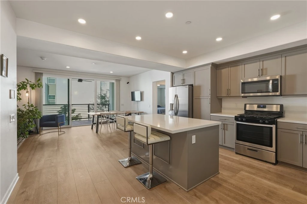 Experience elevated resort-style living at The Resort in Rancho Cucamonga. This beautiful turnkey single-level corner condo features an open floor plan with 3 bedrooms and 2 bathrooms. Built in 2020, this second-floor residence offers elevator access, vinyl flooring, recessed lighting, plantation shutters, and plenty of natural light throughout. The Kitchen showcases quartz countertops and a generous island, flowing seamlessly into the living and dining areas. Step onto your private balcony, perfect for morning coffee or evening relaxation that offers a views of the Club and mountains. The primary suite offers ensuite bath with dual sinks, walk-in shower, and walk-in closet. Enjoy a detached two-car garage with storage racks near the elevator and stairs. Unit is steps away from the exceptional community amenities, which include a media lounge, conference room, fitness center, clubhouse, pool, spa, BBQ areas, EV Charger, a dog-friendly park, and social community events on-site. With a local café and handcrafted tea/boba shops steps away, you won’t want to leave the Resort. This property is located near premier shopping, plenty of dining and entertainment options, the Toyota arena, Metrolink station, major freeways, and the Ontario International Airport.
