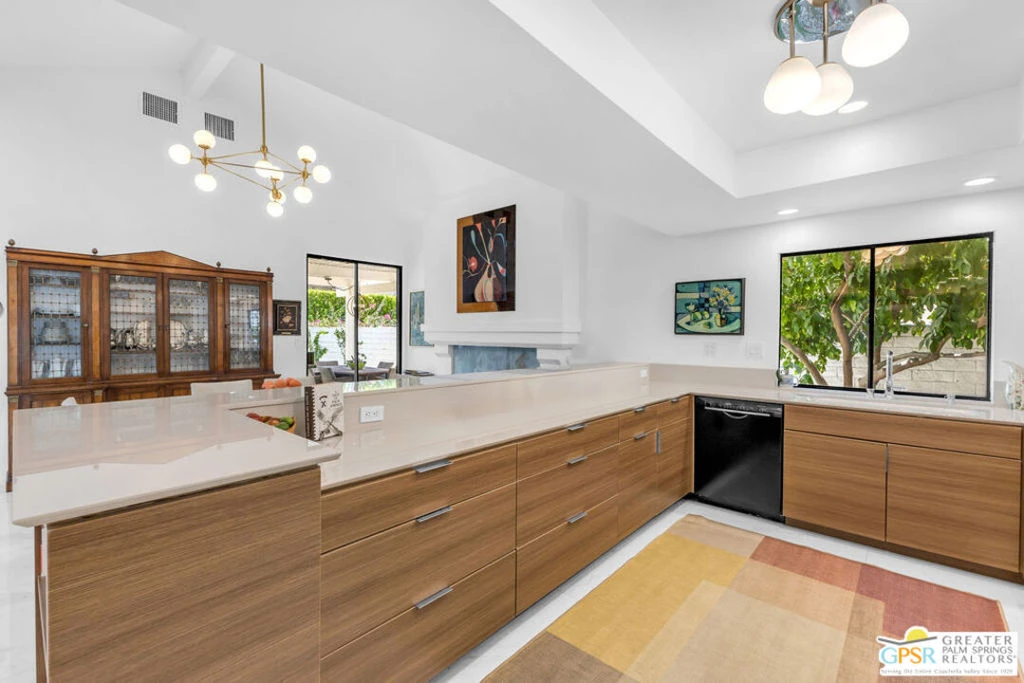 At $875,000, this nearly 3,000 square foot Mission Wells home delivers space, tasteful updates, and pricing that is hard to find in Rancho Mirage. For buyers paying attention to the market, this is the kind of opportunity that stands out. Tall ceilings and skylights bring in natural light across multiple living areas, creating a layout that works for everyday living, entertaining, or showcasing art. The primary suite is set in its own private wing with a sitting area currently used as an office and direct patio access. On the opposite side of the home, two additional en-suite bedrooms provide privacy and comfort for guests. At the center of the home, a custom bar with wine and beverage refrigeration complements a media wall designed for movie nights, sports, or casual gatherings. The kitchen is open and functional, offering newer appliances and generous storage, while a separate custom walk-in pantry provides additional space and organization. Two custom fireplaces add warmth, character, and a touch of architectural flair throughout. Outside, a grassy yard provides a practical outdoor space for everyday use, complemented by a 10-person swim spa for year-round enjoyment, or a blank canvas to design your own outdoor retreat. Located in the gated community of Mission Wells, residents enjoy access to pool, spa, tennis, and pickleball, just moments from Mission Hills Country Club, with convenient access to shopping and dining in every direction. Front yard maintenance is included in the HOA, and 60 leased solar panels help offset energy costs. For buyers looking for space, function, and a compelling price in Rancho Mirage, this is one to see in person. Schedule your private showing today.