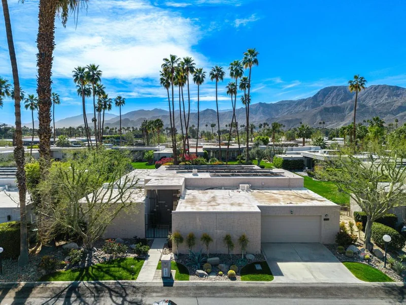 Located in the highly sought-after Tamarisk community--featured on the Modernism Tour and adjacent to the prestigious Tamarisk Country Club--this mid-century residence blends old-world desert charm with iconic architectural pedigree. Designed by renowned architect S. Charles Lee, celebrated for his legendary motion picture theater designs, the home captures timeless style with modern comfort. This won't last, book a private showing today.Floor-to-ceiling windows span the rear of the home, filling the open living and dining areas with natural light and showcasing panoramic south-facing mountain views. Herringbone white wood flooring enhances the clean lines throughout. The flexible floor plan offers three bedrooms and three baths, including two spacious en-suites and a third en-suite bedroom or den. Owned solar, new A/C, and newer mechanical systems complete this exceptional offering in one of Rancho Mirage's most desirable mid-century neighborhoods.