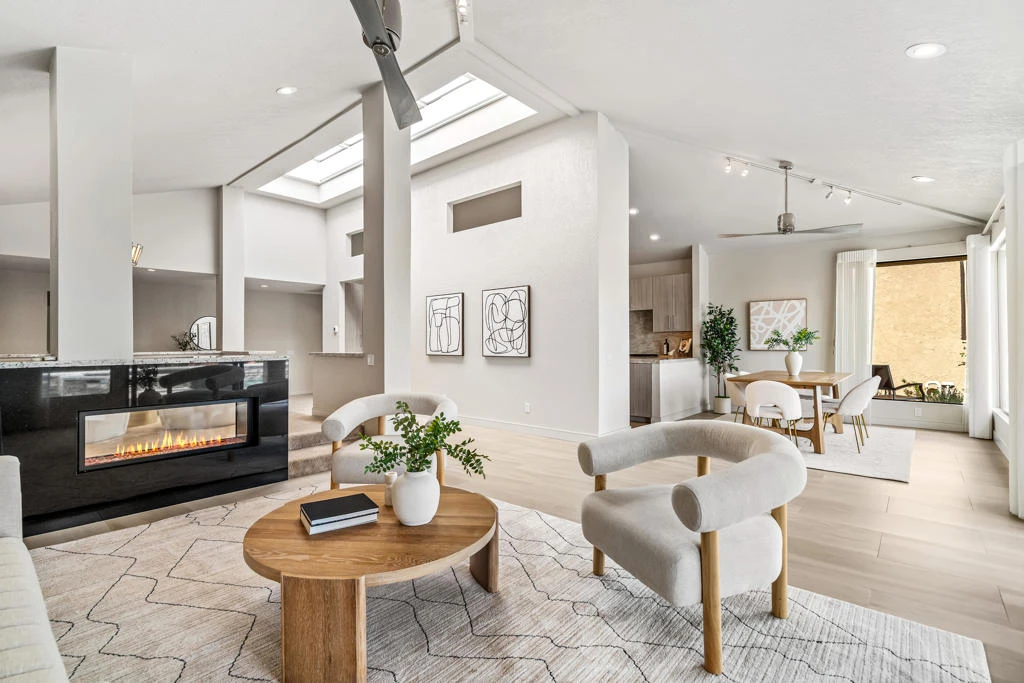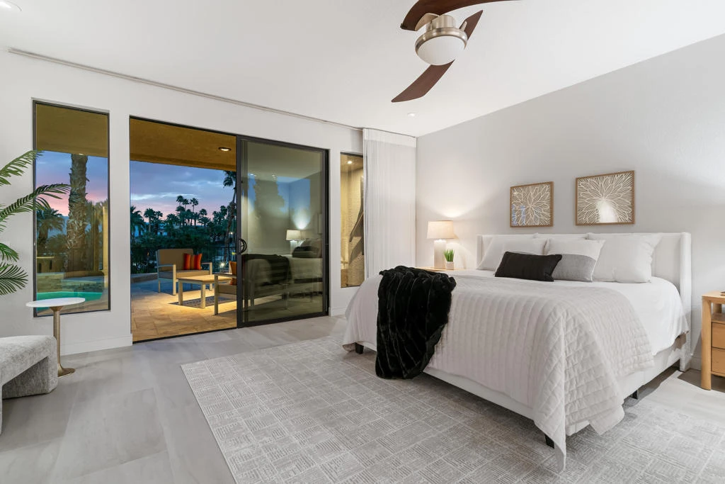 Positioned above the valley floor in Rancho Mirage, 15 Alta Vista offers an elevated setting with expansive mountain and valley views and a strong sense of privacy. From its vantage point a few hundred feet above the surrounding landscape, the home captures the desert's changing light from morning through evening, creating a visual connection that defines daily living.Remodeled approximately five years ago, the residence presents with a cohesive, modern aesthetic and thoughtful upgrades throughout. Vaulted ceilings and skylights enhance the scale and openness of the primary living spaces, while electric skylight blinds provide comfort and light control. The kitchen is finished with Taj Mahal quartzite countertops & backsplash, soft-close cabinetry throughout, and generous storage, opening seamlessly to the dining and living areas for both entertaining and everyday use. Clean lines and consistent finishes create a sense of continuity from room to room.Large sliding doors extend the living space outdoors to a covered travertine patio, pool, and spa oriented toward the views. The backyard is designed to take full advantage of the home's elevation, offering space for outdoor dining, quiet mornings, and evenings framed by mountain silhouettes. Mature landscaping and thoughtful orientation contribute to a setting that feels both open and private.Owned solar enhances long-term efficiency, and the garage is equipped with an EV charging plug, adding modern convenience to the home's extensive improvements.From its elevated position to its completed remodel, the home offers a cohesive living experience centered on light, outlook, and indoor-outdoor flow. The result is a residence that feels current, comfortable, and intentionally positioned to take advantage of its perspective within Rancho Mirage.