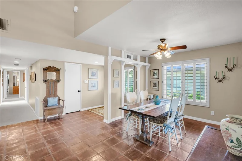 Nestled on a quiet cul-de-sac in the guard gated community of Rancho Las Palmas, this remodeled end unit boasts 3 bedrooms and 2 baths across 1693 square feet. A double door entry off the lush greenbelt opens to a light and airy living room. With vaulted ceilings, a wall of windows looking out to the patio, a wet bar, and a fireplace, the living room is the hub of the home. Remodeled with the updated cabinetry, granite counter tops, and new appliance, the chef’s kitchen is ready to accommodate any culinary creation. Down the central hall, the 3rd bedroom is currently optioned as a family room with built in office credenza and two skylights that pour light into the space. The hall bath was recently remodeled with travertine flooring, a tiled shower stall with glass enclosure, updated vanity with granite counter tops. The hall terminates into the warm and thoughtfully upgraded primary suite. A spacious bedroom, a recently remodeled ensuite bath, large closets, and louvered shutters come together to create a tranquil and refined space. The Rancho Las Palmas community fosters an active outdoor lifestyle with 26 pools, walking paths, tennis courts, clubhouse, and golf. All these activities are available while enjoying the sweeping views of the beautiful natural terrain that lies on the horizon. The seller would like to sell the home fully furnished. If a home in this esteemed community has been on your list, this home deserves a tour.