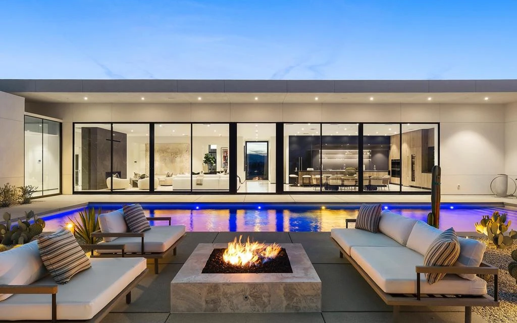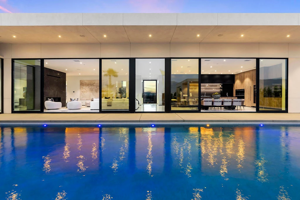 A dramatic modernist estate, Residence Seventeen accentuates scale and light, providing luxurious and expansive open living spaces; all the qualities of a truly grand architectural residence. The home boasts an impressive wall of glass that captures panoramic grand mountain views. The primary suite is attached by a stunning glass corridor connection, an independent pavilion gracefully overlooks a grand resort pool. The site line of the 90-foot long dramatic roof overhang unifies the powerful glass facade and mutes lighting for the media room garden. The breathtaking interior includes a massive free-floating fireplace and stylish Italian floor to ceiling cabinetry with wine column and display. A huge theater/media room with its glass wall to the artfully designed cactus garden are but some of the enlightened architectural features of this stylish home