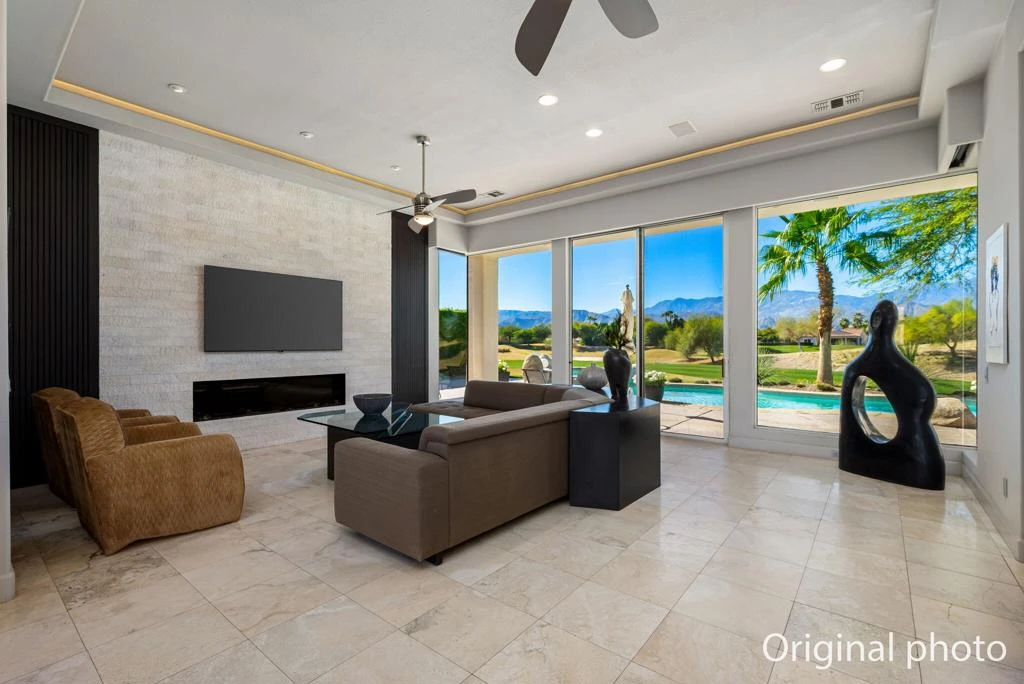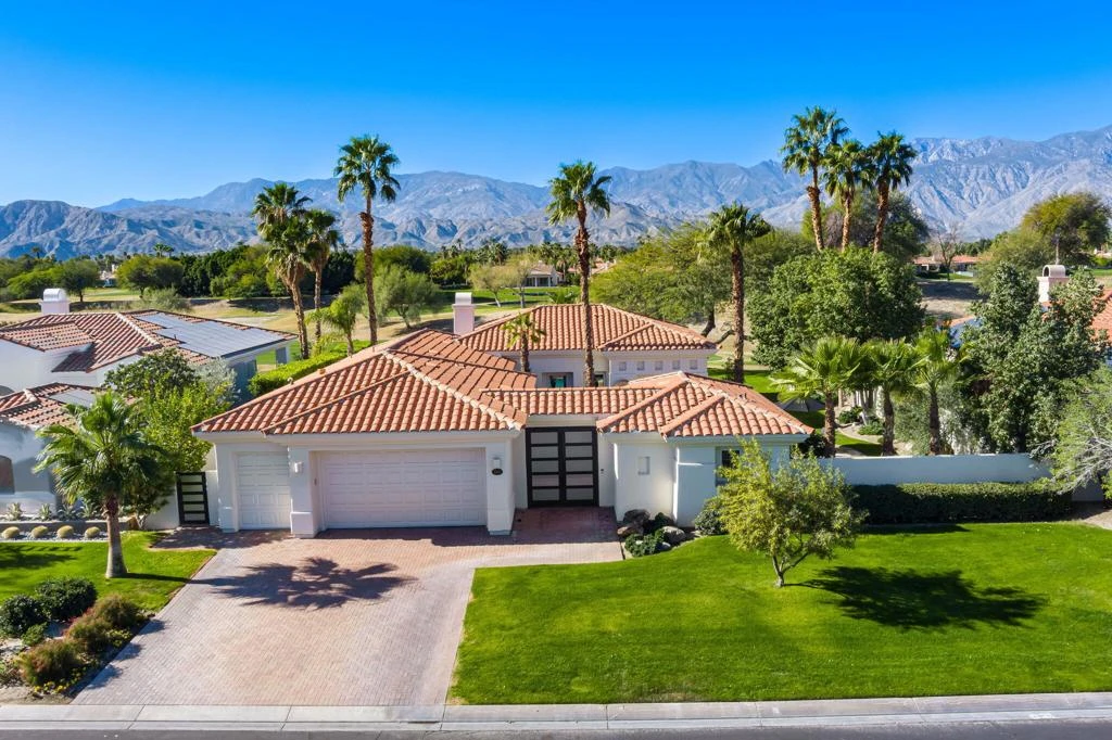 Stunning South and West Views Across #15 of the Pete Dye Course, Tasteful Contemporary Updates with Interiors by noted Designer, Popular Open Floor Plan with Casita and Oversized Lot with Room to Easily Add 4th Bedroom or Office. Enter through stylish gates to an oversized paver clad courtyard with statement water feature, outdoor living areas and extensive side yard with custom landscaping. Glass Door Entry to an Open Great Room with those spectacular views of golf course and mountains - some of the best in Mission Hills Country Club. Great Room features a custom stacked stone fireplace with wood accents, stone flooring, custom coffered ceiling with lighting, automatic sun shades and entertainer's bar. Social Kitchen features quartz countertops, island with counter seating, custom cabinetry, upgraded appliances and views throughout. Dining Room with cove lighting and French Doors to the Courtyard. Primary Suite is oversized with Retreat area overlooking the views and an Updated Spa Bath. One Guest Suite in the House with updated bath and a Casita with Custom Built-ins,Updated Bath and its own outdoor living space are perfect for family and friends. Oversized Lot provides great outdoor space and room to easily add additional living space if needed. Outside Resort Living with Pool and Spa, Multiple Terraces, BBQ area, extensive lawns for fun in the sun. Legacy ownership includes Mission Hills CC Social and Fitness Membership. This is the one you have been waiting for with a premium location and fully updated contemporary finishes. Furniture and most art negotiable - Come home to your desert retreat!
