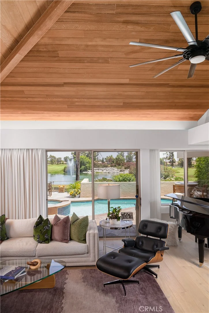Discover unparalleled sophistication in this stunningly reimagined former model home, nestled within the prestigious Rancho Mirage Country Club. Spanning 3,250 sq. ft., this 3-bedroom, 3.5-bath masterpiece seamlessly blends timeless elegance with modern luxury. Showcasing rare red cedar tongue-and-groove vaulted ceilings in the entry, living room, stairwell, and primary suite, the home exudes warmth, character, and architectural charm. Every detail of this home has been thoughtfully designed and meticulously updated to create an inviting yet stylish retreat. The kitchen, a true chef's dream, boasts contemporary finishes, sleek cabinetry, an extended center island, and modern appliances. Perfect for entertaining or casual dining, this space effortlessly complements the open-concept floor plan. Wide plank white oak flooring graces the main living areas, while solid core oversized pocket doors connect each space seamlessly, flooding the home with natural light. No element has been overlooked in the home's extraordinary transformation. The bathrooms have been fully updated with modern fixtures and finishes, reflecting a refined design aesthetic. Fresh interior paint highlights a neutral, sophisticated color palette, while updated electrical systems, including can lighting, elevate functionality and ambiance throughout. Every room has been curated to balance style with comfort, making this home truly turnkey. Step outside and experience the ultimate in desert living. The backyard is a private oasis featuring a newly replastered pool and spa with updated tile, perfect for relaxation or entertaining. An integrated mister system ensures comfort even on the warmest days, while the inviting patio area provides a serene escape for outdoor gatherings or quiet solitude. Additional upgrades include energy-efficient windows, modernized flooring, and enhanced appliances and equipment, all designed to ensure an effortless living experience. Located within one of the desert's most coveted communities, this home epitomizes elegance, functionality, and attention to detail. Whether hosting lively gatherings or savoring peaceful moments, this property offers the perfect blend of beauty and practicality. Don’t miss this rare opportunity to own a home that is more than a residence—it's a sanctuary of style and sophistication. Your dream home awaits.