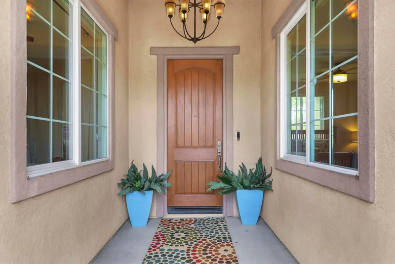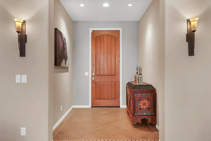 Lovingly maintained by its original owner, this well-appointed home blends comfort with purposeful design. A traditional floor plan provides well-defined living spaces for everyday living and entertaining, complemented by a spacious kitchen adjoining the main living area and a versatile flex space currently utilized as a formal dining room. The kitchen is outfitted with abundant cabinetry featuring pull-out shelving, stainless steel appliances, an oversized island, and a sunny breakfast nook. The living room is complimented by a glass-tiled fireplace and a fully equipped wet bar with a sink, wine rack, and custom cabinetry, seamlessly connecting the kitchen and living spaces. The primary suite is generously sized and features dual vanities, two walk-in closets, a soaking tub, and a large walk-in shower with bench seating. Two secondary bedrooms share a Jack-and-Jill bathroom, while the additional bedroom enjoys its own private en suite. Outdoor living is equally inviting, with mature landscaping creating a private retreat. The backyard includes a PebbleTec saltwater pool and spa, misting system, extended alumawood patio cover, plenty of seating areas, and mature lemon, orange, and lime trees ideal for both relaxation and entertaining. Additional highlights include updated dual HVAC systems, new hot water heater, new pool salt cell, surround sound throughout, Vivint security system with cameras, laundry room with utility sink, and an epoxied garage floor. Located within the gated community of Mission Shores, residents enjoy scenic lake and mountain views, complemented by close proximity to premier desert amenities. The HOA provides front yard landscaping, cable and WiFi, lake access, a community park with playground and basketball court, and well-maintained common areas. Ideal as a primary residence, second home, or desert getaway, this property offers both comfort and convenience.