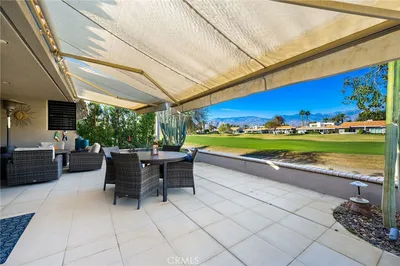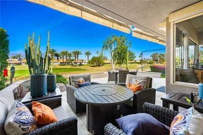 Panoramic views abound from this Desert oasis! This gorgeous fully furnished condo is located in the sought after Mission Hills Country Club and has panoramic West facing mountain and golf course fairway views which makes this location second to none. The home features 3 bedrooms and 3 baths, and two outdoor patios. This contemporary home has lots of upgrades such as tile and granite counter tops, high grade carpeting, new awnings, HVAC, and water heater . The backyard patio is an entertainer's paradise perfect for relaxing and enjoying the beautiful views and sunsets. All exterior windows and sliders have aluminum roll up shutters, that are perfect for keeping the house well insulated when away from the home. This home exemplifies the wonderful lifestyle that Mission Hills Country Club has to offer. Live the Desert lifestyle today!