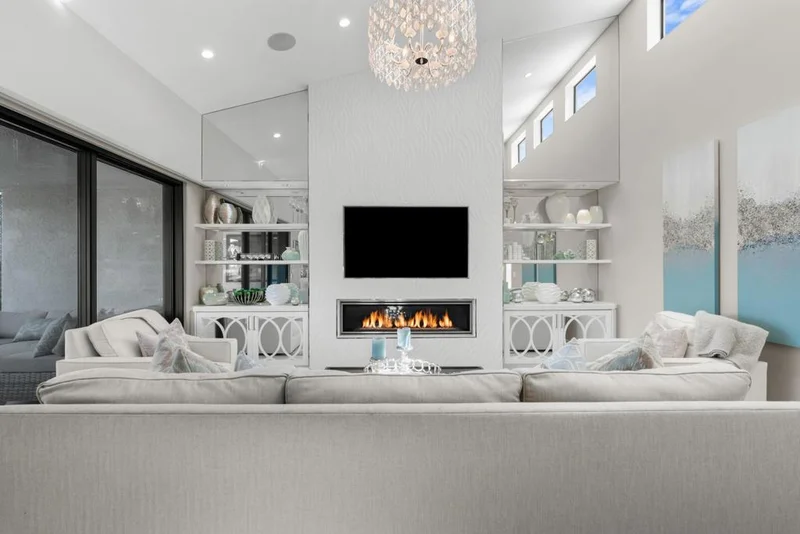 Set at the end of a quiet cul-de-sac just moments from the clubhouse and pro shop, this completely remodeled residence enjoys a rare combination of privacy, panoramic golf course vistas, and effortless access to the community's premier amenities. Inside, a light-filled open floor plan unfolds beneath dramatic vaulted ceilings and clerestory windows, creating an airy architectural presence throughout the main living spaces. The living room is anchored by a sleek linear fireplace set within a sculptural feature wall, flanked by custom built-ins and illuminated by a statement chandelier that adds a touch of modern sophistication. The fully remodeled kitchen is both stylish and functional, featuring custom cabinetry with designer glass detailing, quartz countertops, stainless steel appliances, and a generous center island designed for gathering and entertaining. Expansive windows frame lush golf course views, bringing the beauty of the surrounding landscape into the heart of the home. The spacious primary suite offers a peaceful retreat with high ceilings, abundant natural light, and a beautifully appointed spa inspired bath with dual vanities, custom lighting, and a large glass enclosed shower. Two additional guest suites provide comfortable accommodations for visitors while maintaining privacy. Outdoors, a covered patio with power awnings extends the living space, creating an inviting setting for morning coffee, alfresco dining, or evenings around the firepit while enjoying sweeping fairway and mountain views. The patio's generous scale and intimate seating areas make it ideal for both relaxed everyday living and entertaining guests. Residents of Rancho Las Palmas Country Club enjoy access to an exceptional collection of amenities including 27 holes of championship golf, tennis and fitness facilities, a vibrant clubhouse with dining, and 29 pools and spas throughout the community. Ideally located in the heart of Rancho Mirage, the property is also just moments from The River, where shopping, dining, and entertainment can be reached in minutes, even by golf cart. A rare opportunity to enjoy effortless desert living in one of Rancho Mirage's most beloved golf communities.