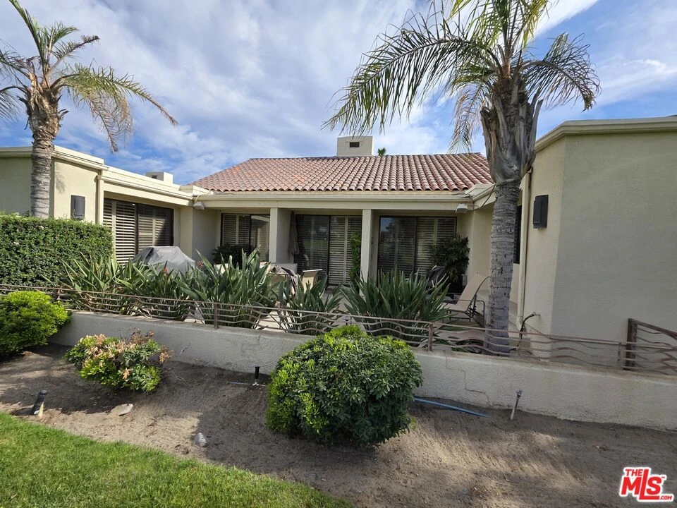 BEST LOCATION WITHIN MHCC AND READY TO SELL. Experience desert luxury in this stunning end unit model home featuring just under 3,000 sq living space that provides breathtaking views of from every room. Best Location in the entire Club! Panorama of the San Jacinto and Santa Rosa Mountains along with fairway views of the Tournament Course and swimming pool. Prepaid land lease and prepaid outdoor budling improvements. The open-concept layout is an exercise in modern design, with classic finishes and an abundance of natural light. The gourmet kitchen is a chef's delight, showcasing high-end appliances, a decorative granite, and a large eat-in counter for casual dining plus an extra dining and family rooms. The spacious master suite features an en-suite bathroom with dual vanities and contemporary fixtures. Each bedroom has a direct patio access to the outdoors making it private and secluded for guests or extended family. The fully fenced front yard, with its meticulous landscaping, offers a peaceful and safe oasis for an outdoor BBQ or sun bathing. Conveniently located within short distance to everything; The prestigious Mission Hills Country Club in Rancho Mirage offers state-of-the-art fitness, tennis, lap pool, restaurants, gift shop and more. Well suited for full-time living, seasonal second home, or investment property this residence is the biggest 3 bed/3 bath in the Mission Hills Country Club Villas I! Additional features are vaulted ceilings, living room fireplace, detached 2 car garage. Inside laundry room includes washer and dryer. Available fully furnished or unfurnished. Original model unit, super close to Clubhouse, gym, restaurants, tennis and golf. Units in HOA Villas I are currently being freshly painted outside incl facia (already paid for by seller). New gutters. Seller accepting any offers, just wants to sell.
